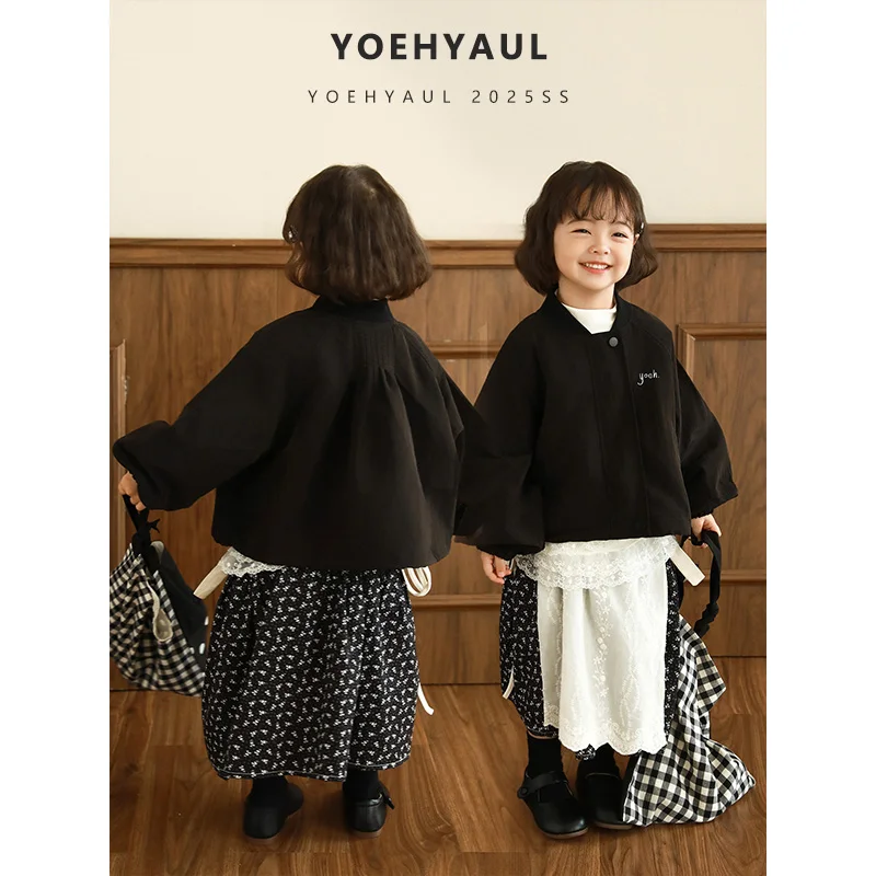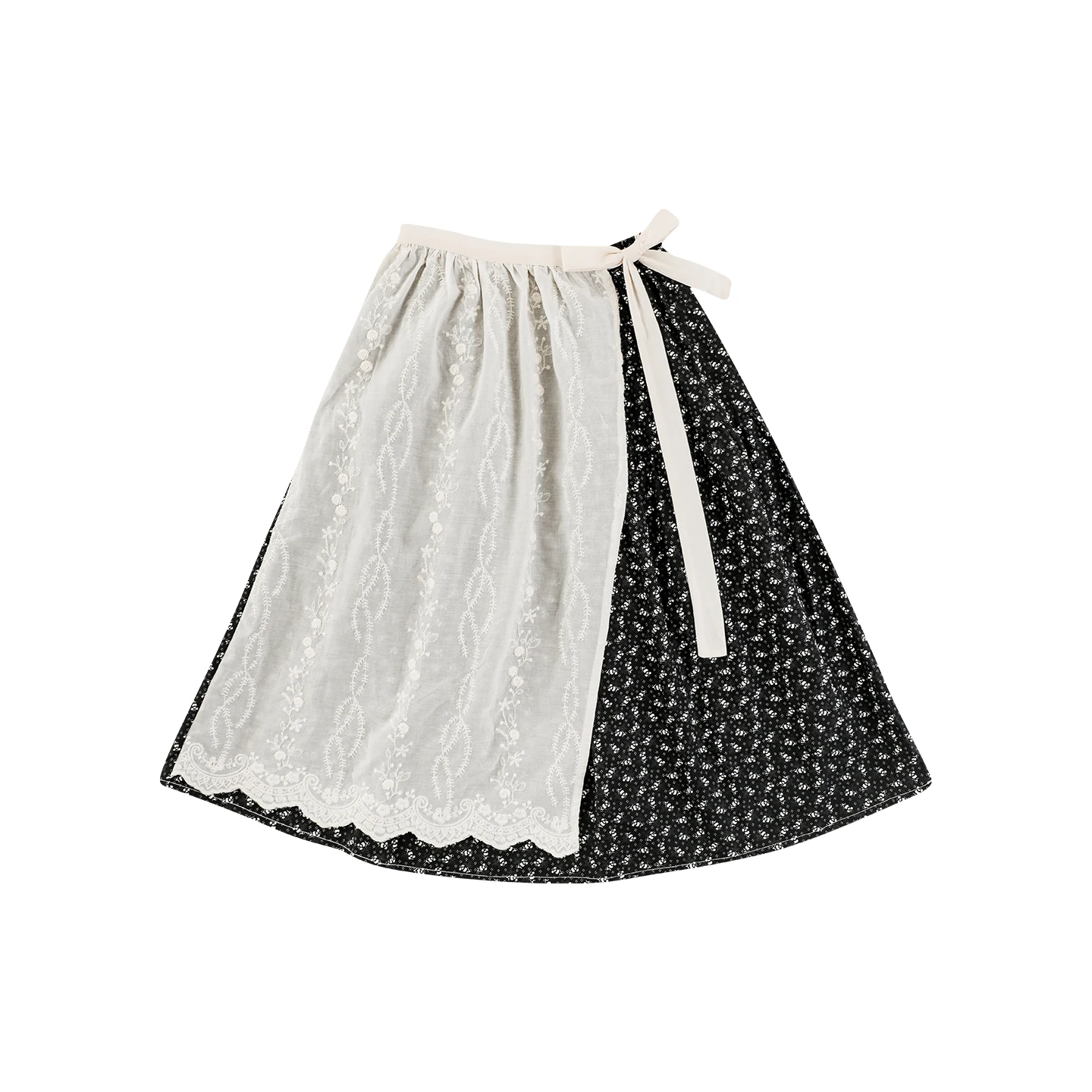 YOEHYAUL CD2262 New 100% Cotton Girl Skirt Pastoral Style Girl Floral Long Skirt Embroidered Bib Skirt Girl Knee-length Skirt