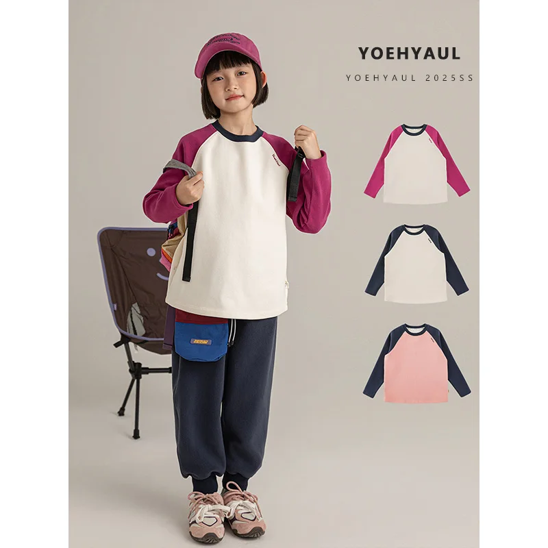 Children's Long Sleeve Top Apparel Customizable 230g Cotton Basic Shirt Layering Tee Plain Colors OEM