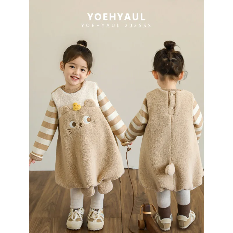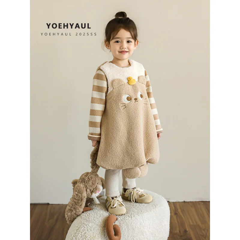 YOEHYAUL D4303 Cute Sleeveless Children's Winter Fleece Dress Kids Thick Causal Dress for Girl