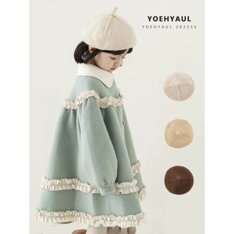 YOEHYAUL S1891 Casual Warm Kids Beret Hat for Baby Girl Comfortable Winter Solid Children's Knitted Hats