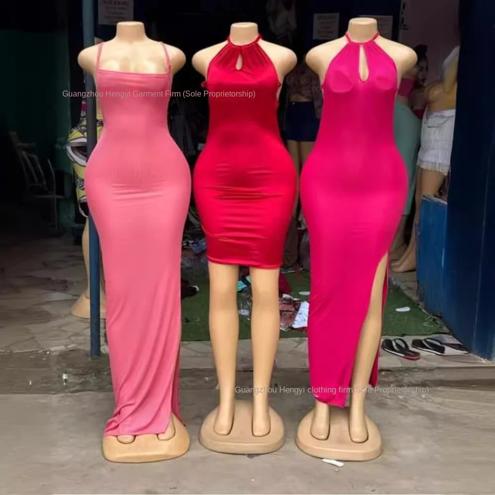 2026 New High Women's Elegant Maxi Dress Sexy Chiffon Formal Party Wear for Spa Girls XS Washable Natural Waistline Plain Dyed