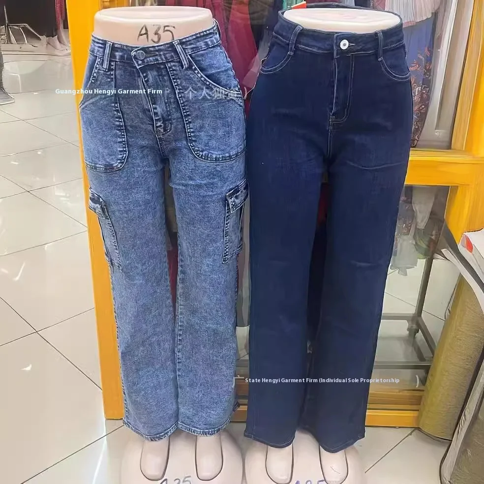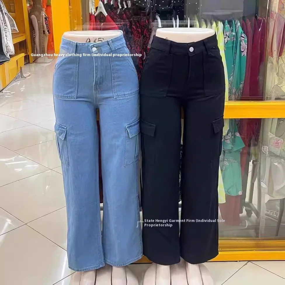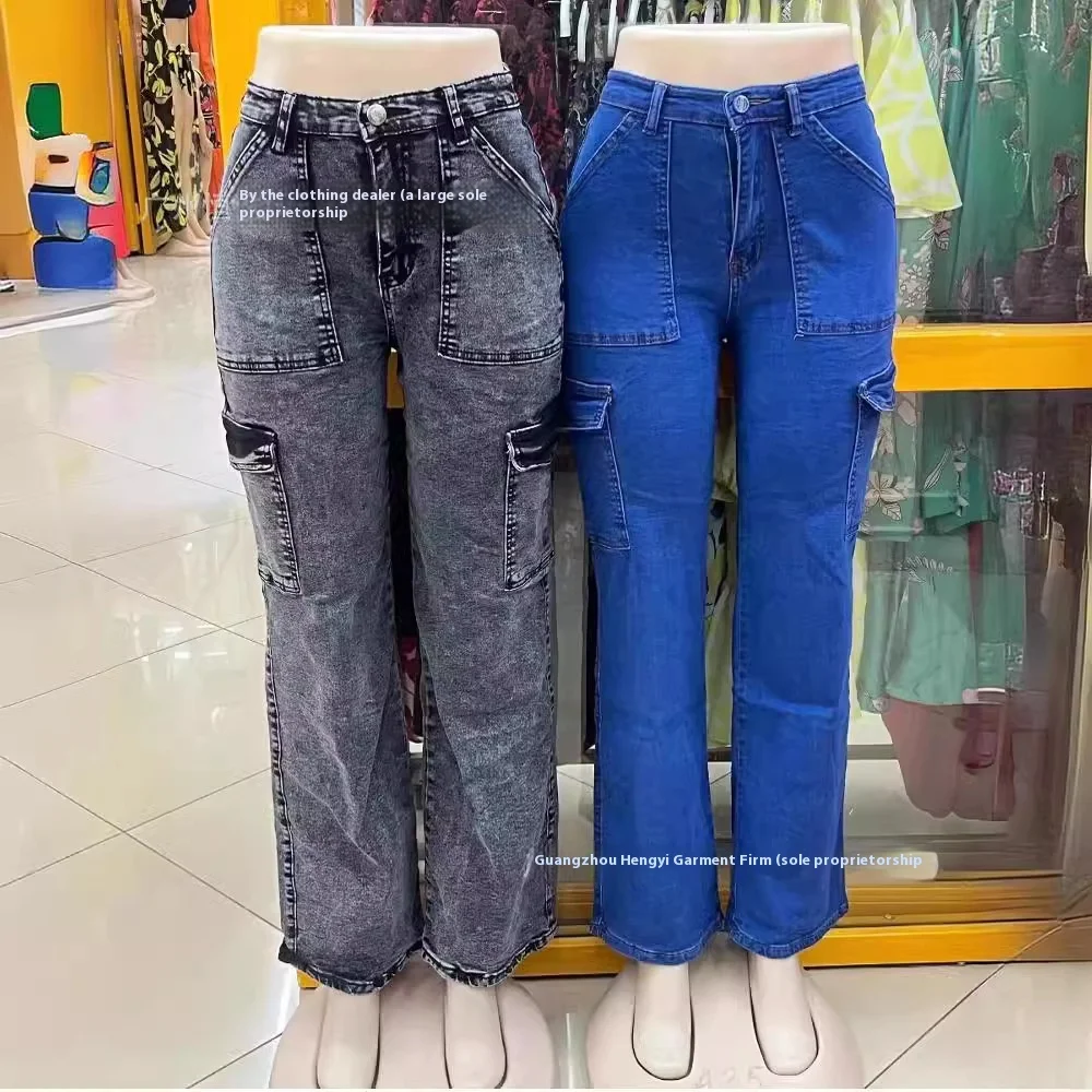 Women's High Waist Multi-Pocket Denim Overalls New Casual Straight Style Jeans for Autumn and Winter Wholesale