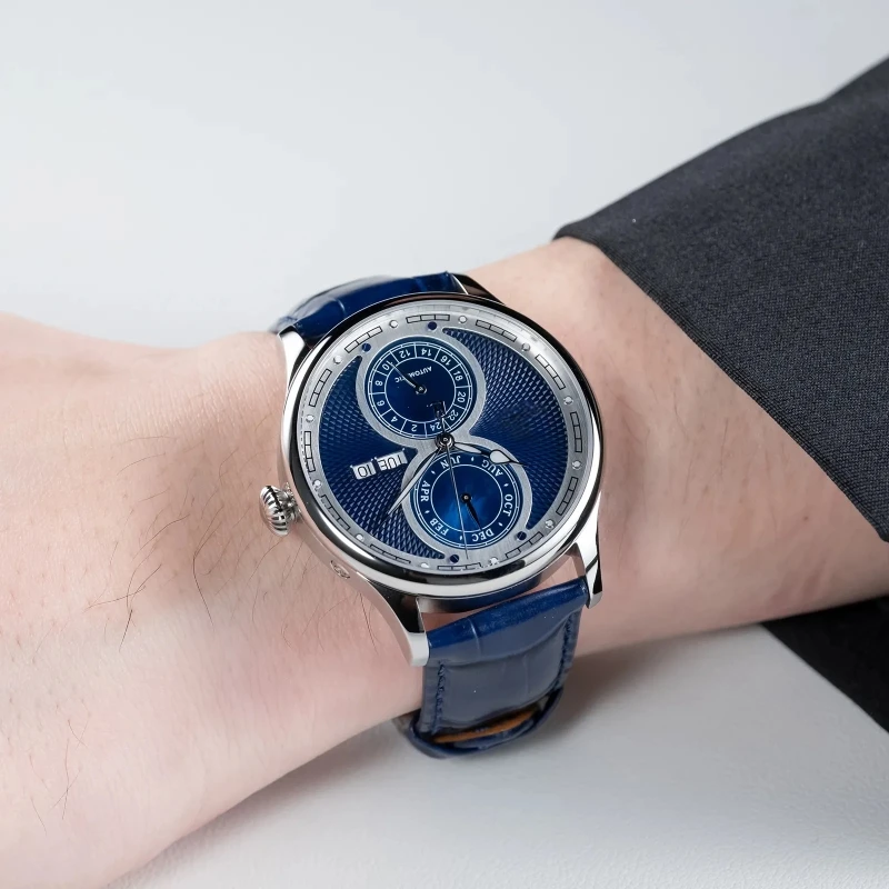Custom Logo 24-Hour Display Multifunctional Automatic Mechanical Watch Full Calendar Waterproof Men's Watches Steel case