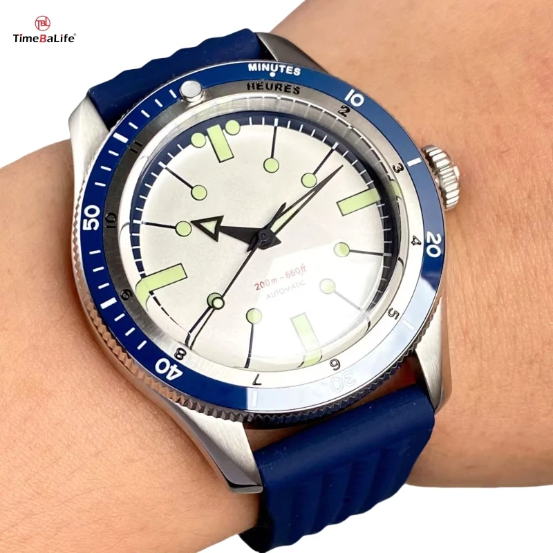 ODM Custom Vintage Dial Dome Bow Sapphire Glass NH35A Movt 120 Clicks Bezel 20BAR Diving Mechanical Men Business Watch