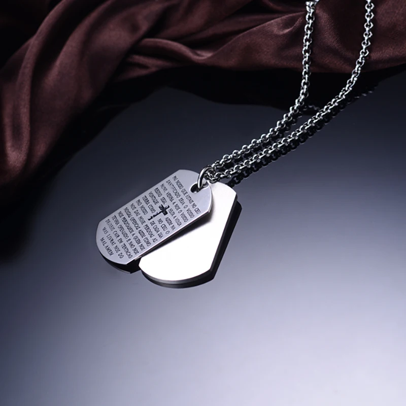 Hip Hop Pendants with Chain Letter Neck Ornament Mens Double Layered Stainless Steel Chain Necklace Fine Jewelry Pendant for Men