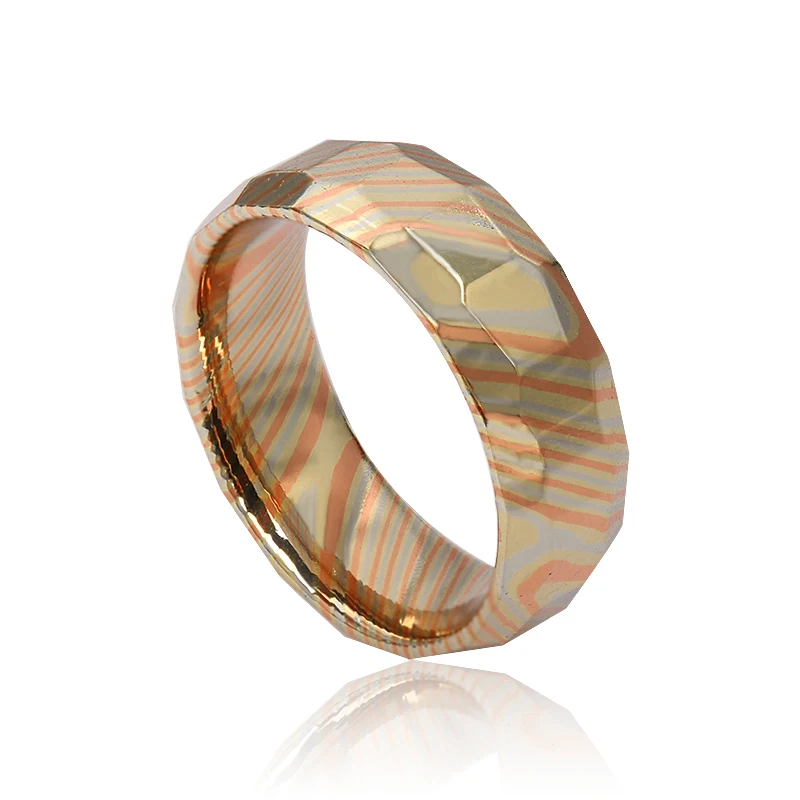 8mm Wedding Band Beveled Edge Mokume-Gane Men Rings Jewelry