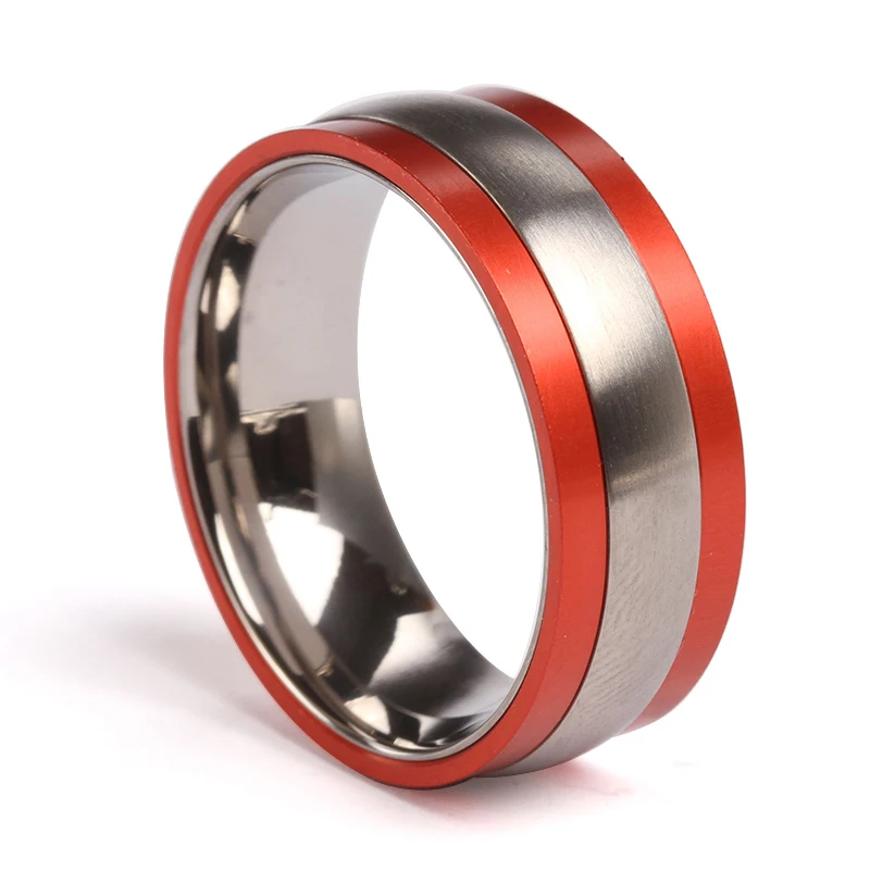 New Fashion 6mm Black Plated Red Aluminum Liner Comfort Fit Titanium Mens Wedding Bands Tungsten Stainless Steel Ring for Men