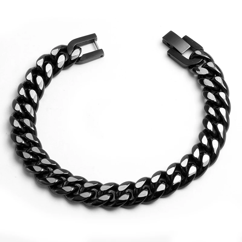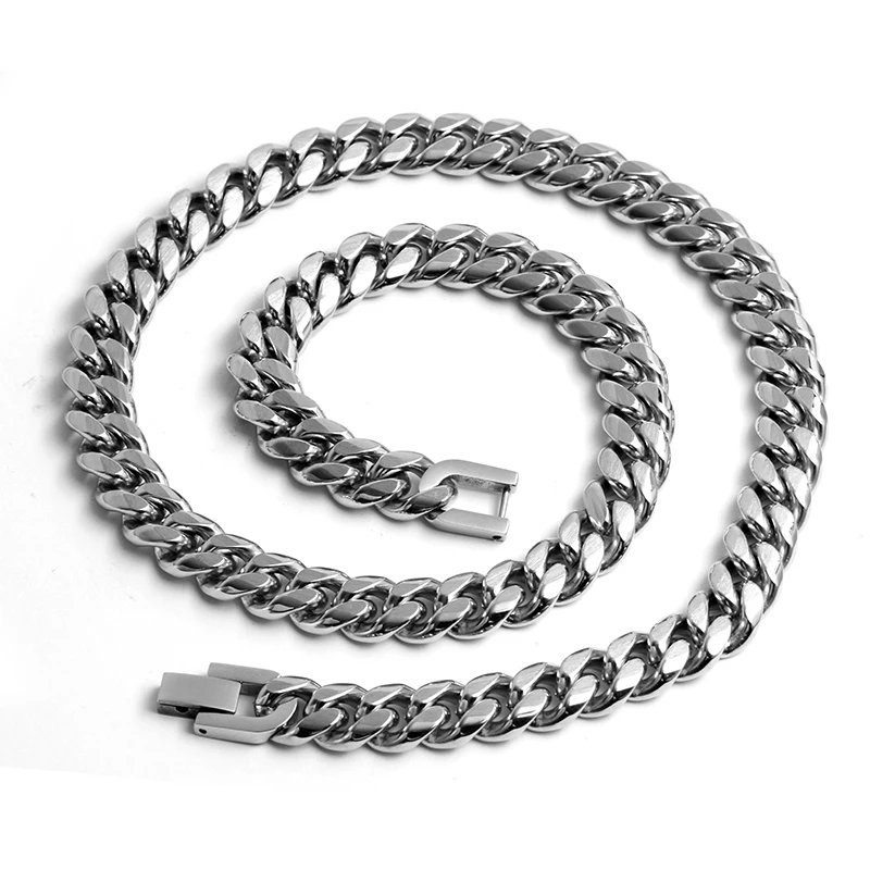 Tizti Jewelry Fashionable Jewelry Gold Silver Black Necklace Bracelet Stainless Steel Curb Men Cuban Chain