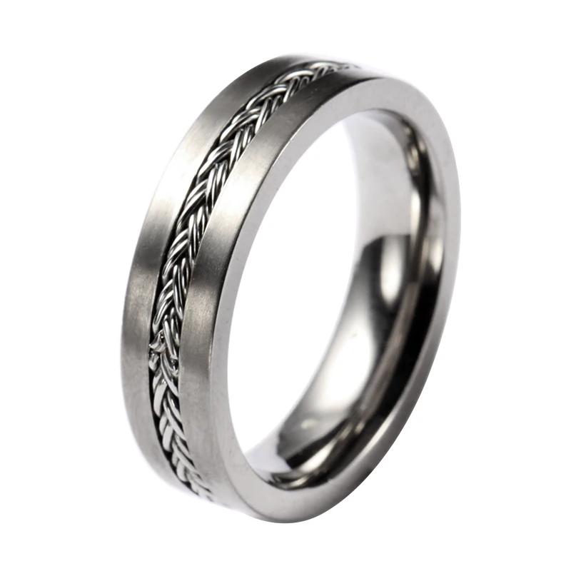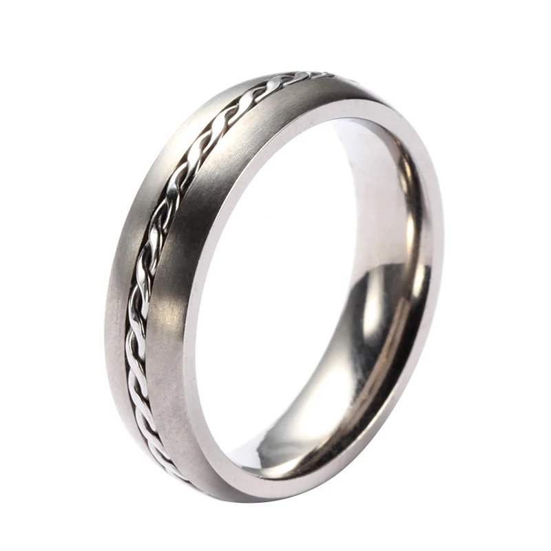 Unisex Braided Chain Inlay Stainless Steel Rings Wedding Band Men Women Silver Steel Jewelry Wedding Rings
