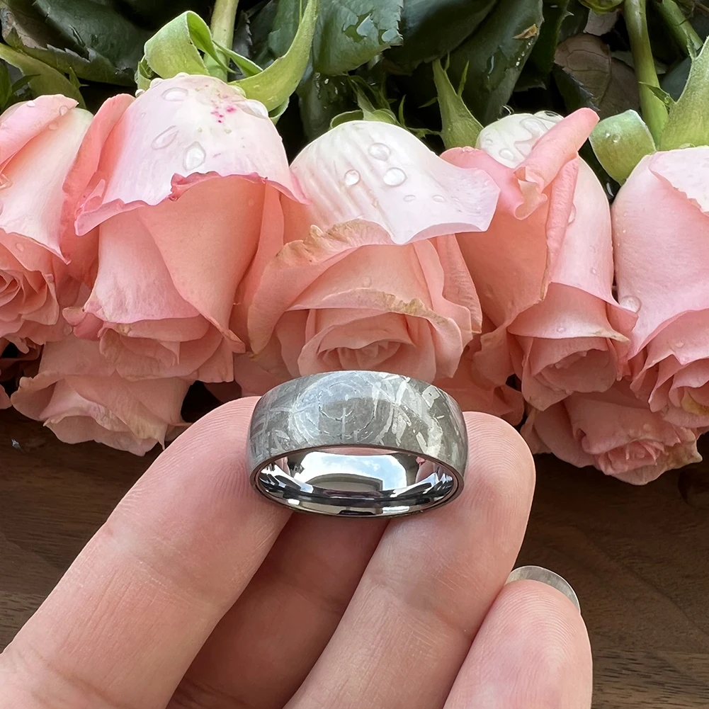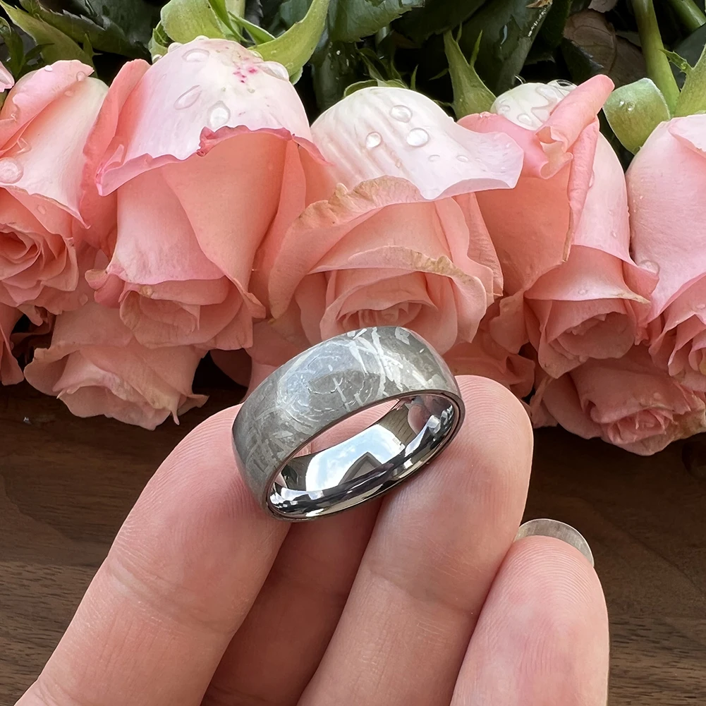 8mm Custom Domed Genuine Meteorite Ring Pure Tantalum Sleeve Ring Mens Wedding Bands