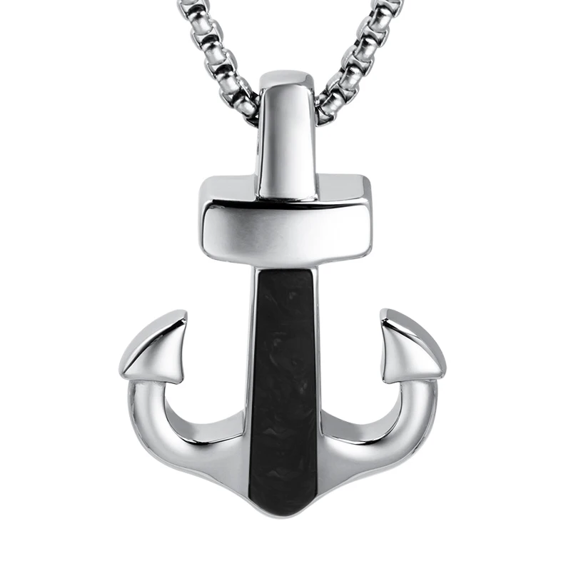 Trendy Unique Stainless Steel with Forged Carbon Fiber Cross Necklace Pendant for Men
