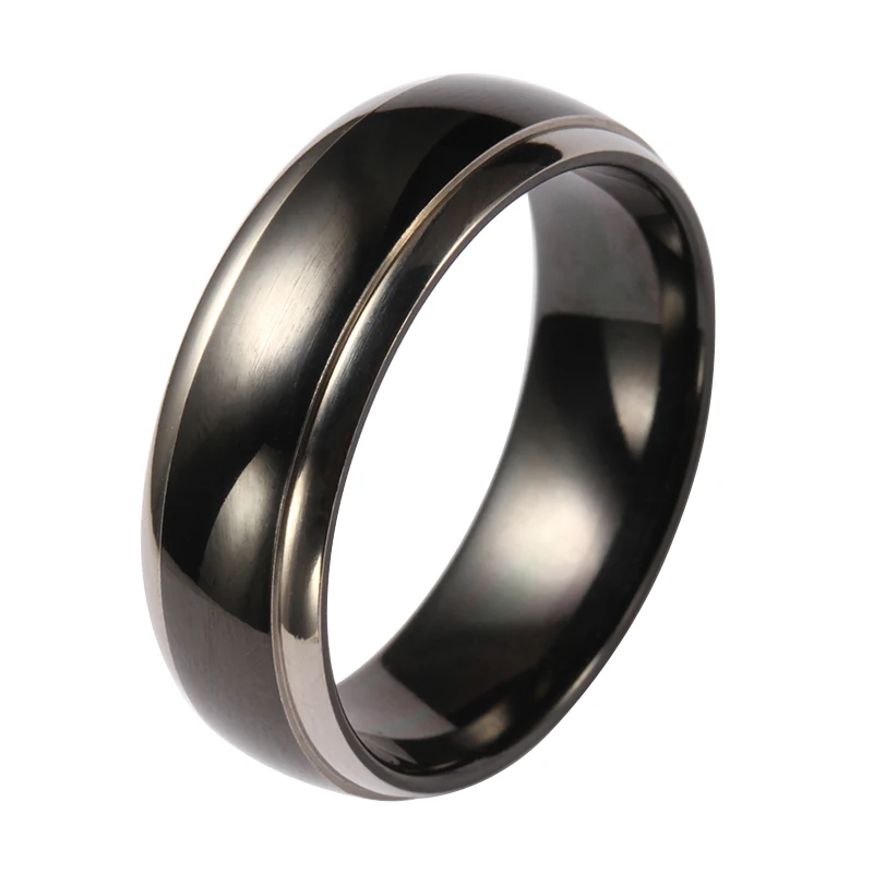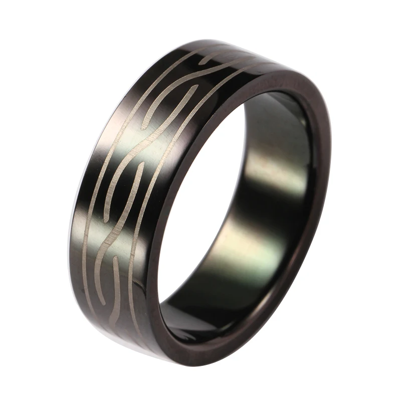 8mm Dome Fashion Laser Engrave Stainless Steel Ring Jewelry Black Matte Pure Titanium Mens Wedding Band