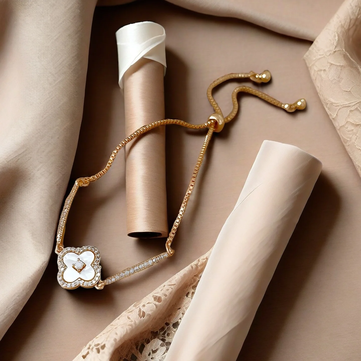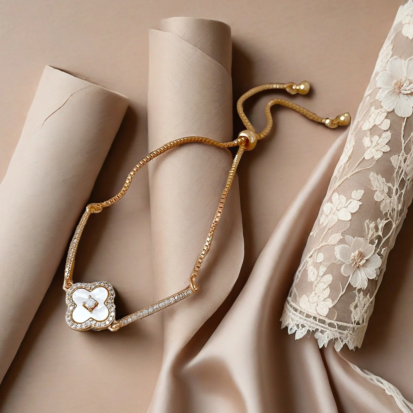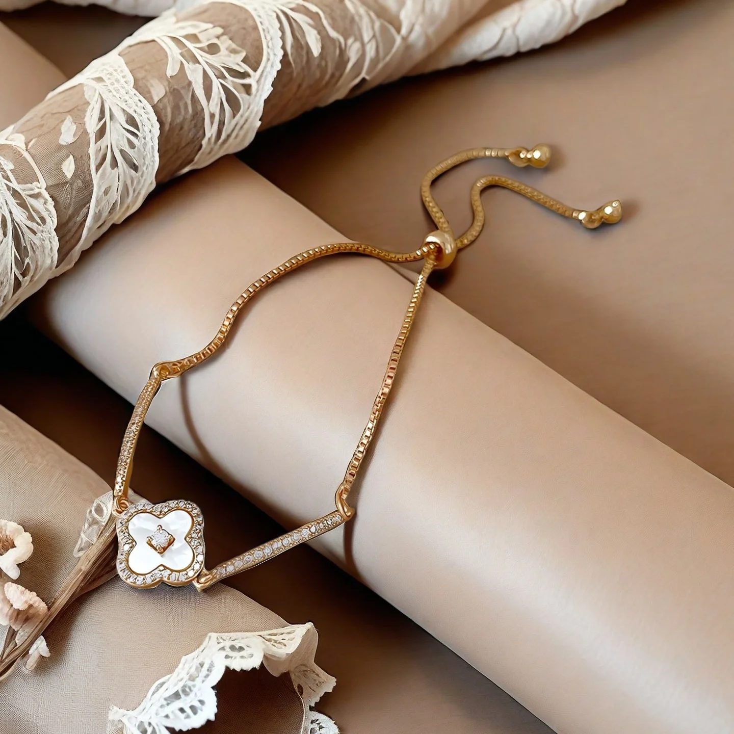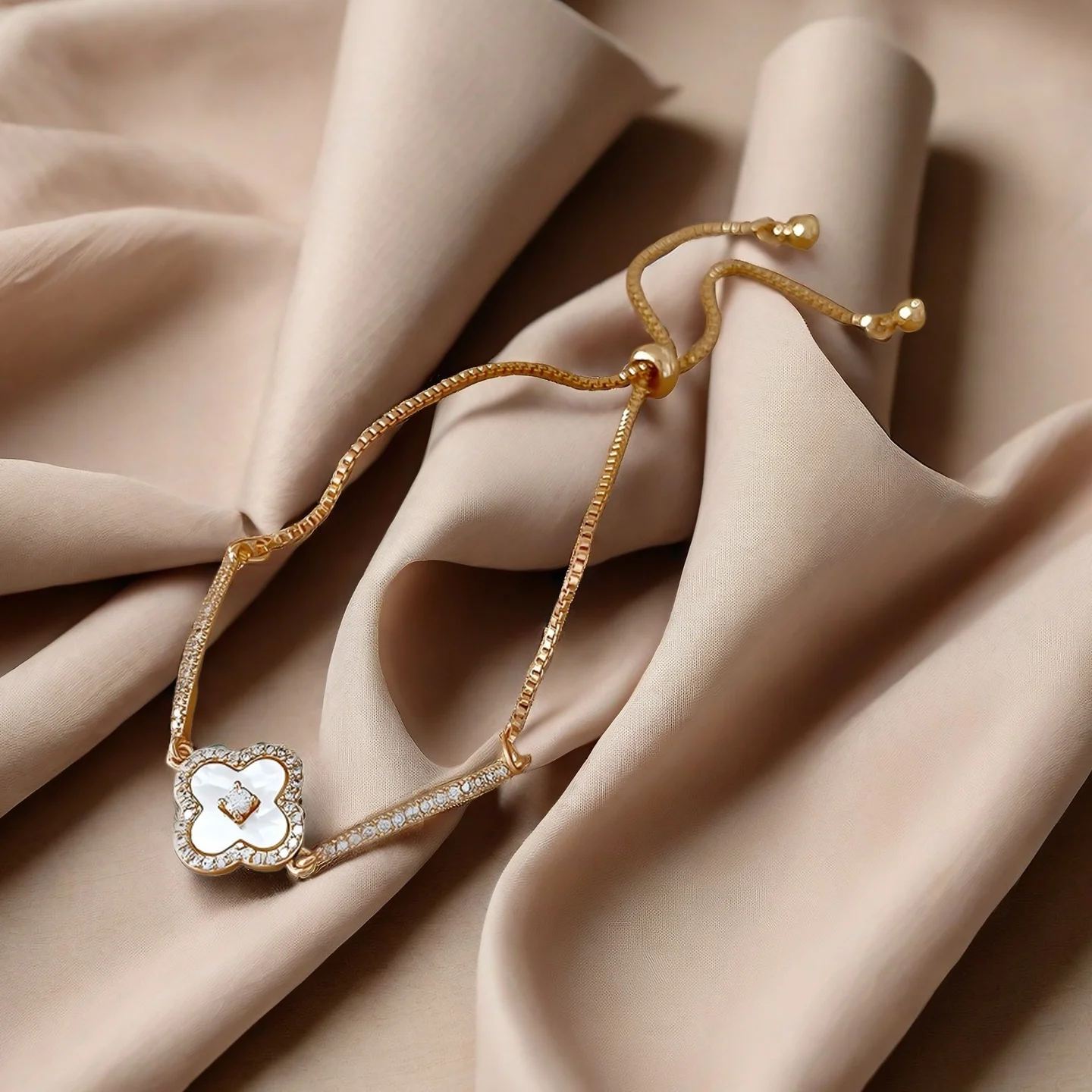 4 Four Leaf Clover Tennis Bracelets Gold Plated Copper Zircon Mother-of-pearl Bracelet Jewelry Fancy Jewellery for Ladies Women