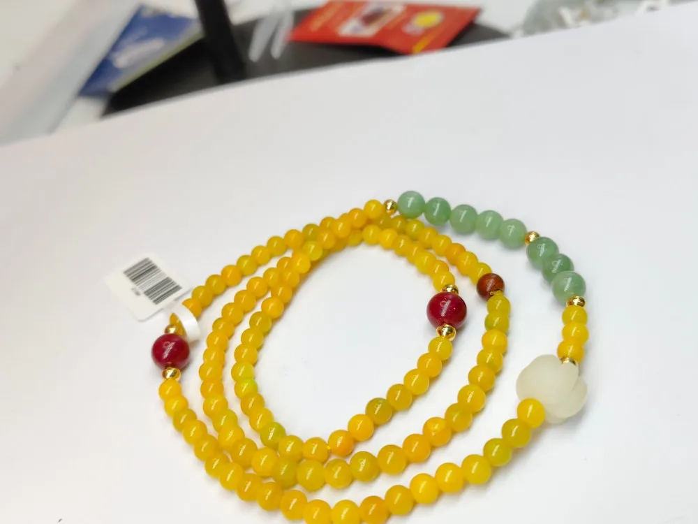 Ethnic Three Circle Yellow Jadeite Hand String Female Lotus Pendant Beaded Multi Layer Jadeite Hand String