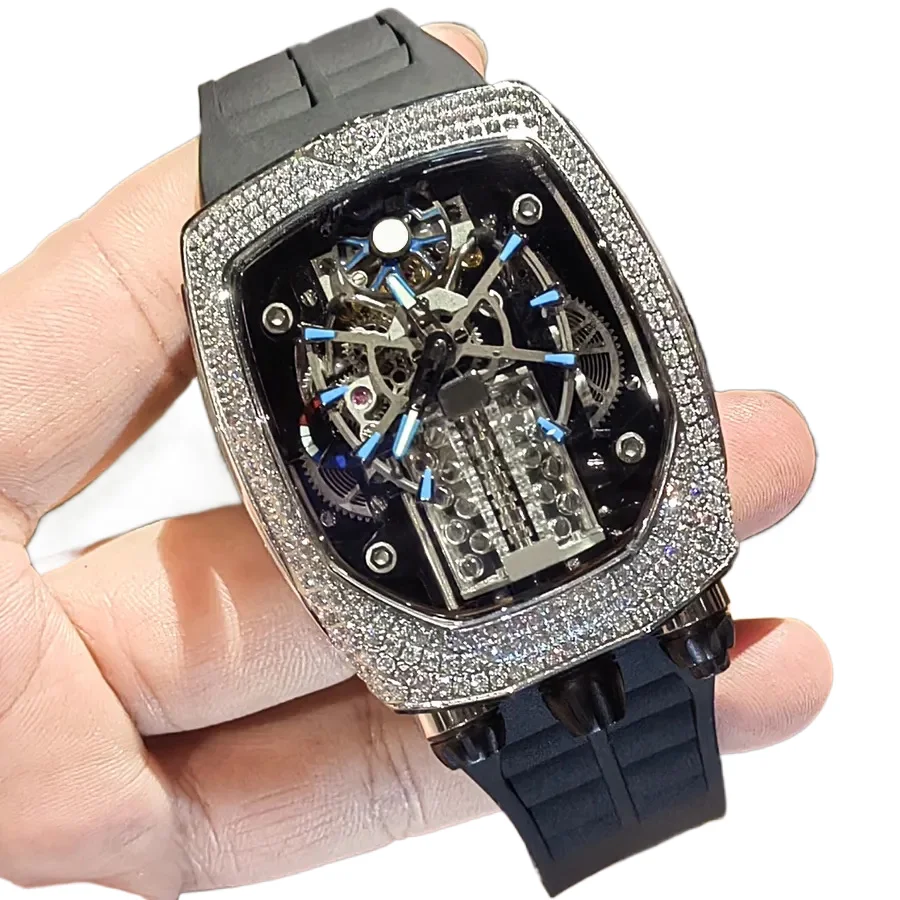 New High-quality Business Style Diamond-set Moissanite Luxury Tourbillon Men's Mechanical Watch Fiber Waterproof Automatic Watch