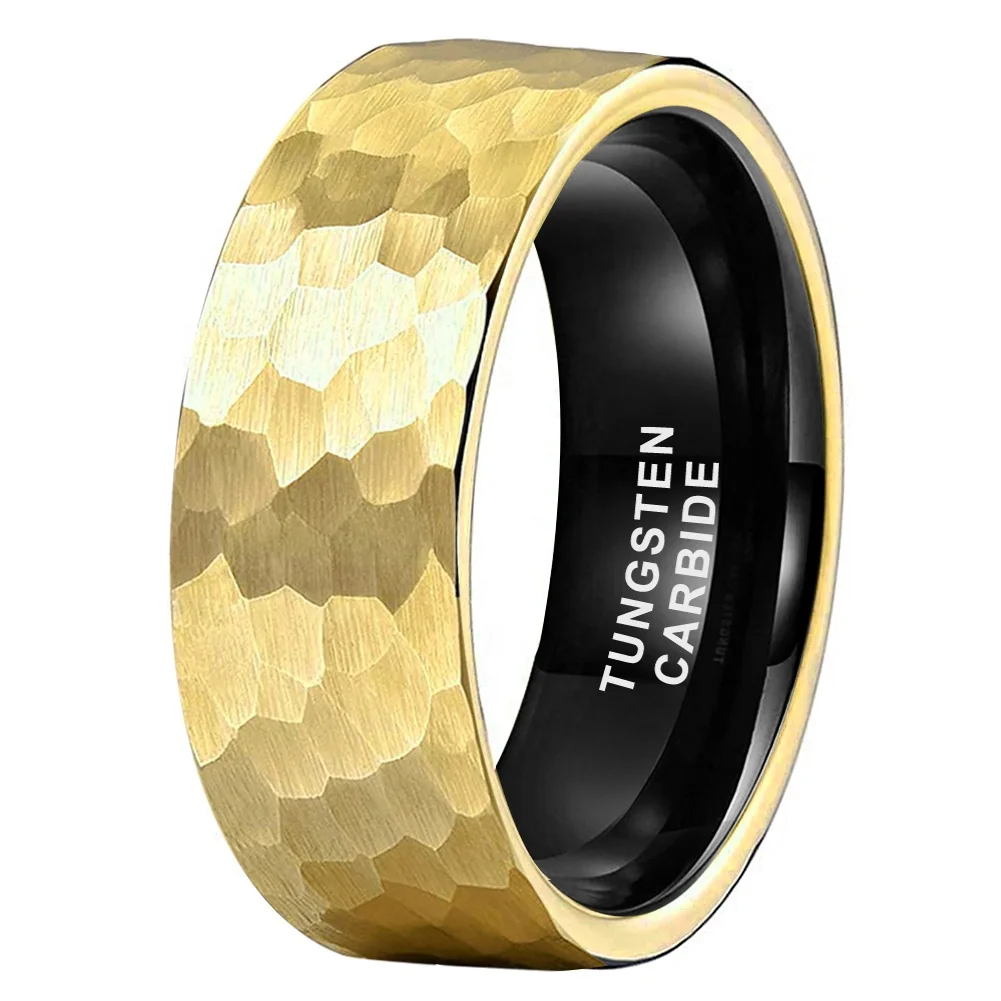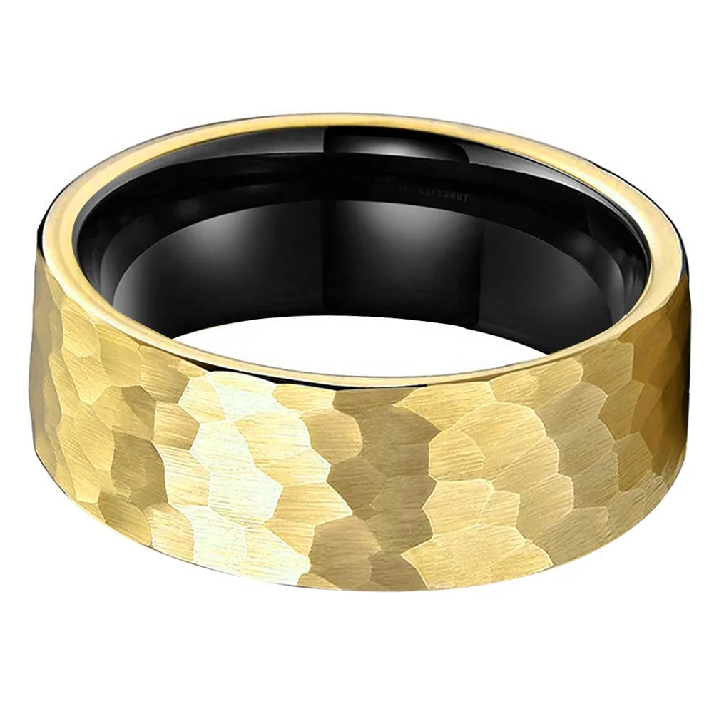 Coolstyle Jewelry Wholesale 8mm Black Gold Hammered Tungsten Ring for Men Women Fashion Engagement Wedding Band Comfort Fit