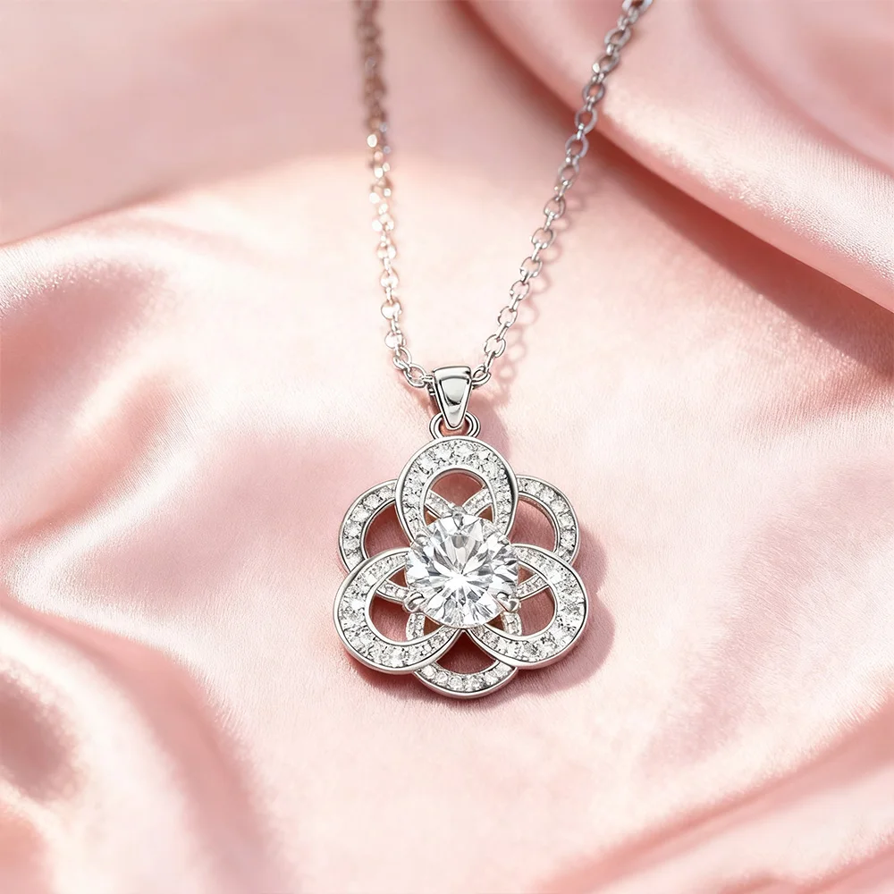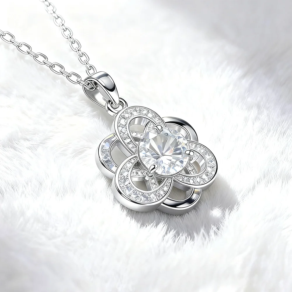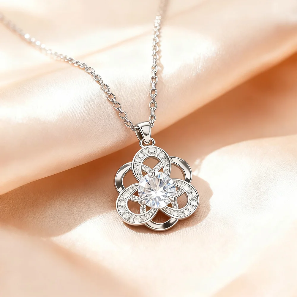 Stylish 1Ct VVs1 Moissanite Women Diamond Luckily Six Leaf Clover Pendant Necklace Jewelry of Ladies