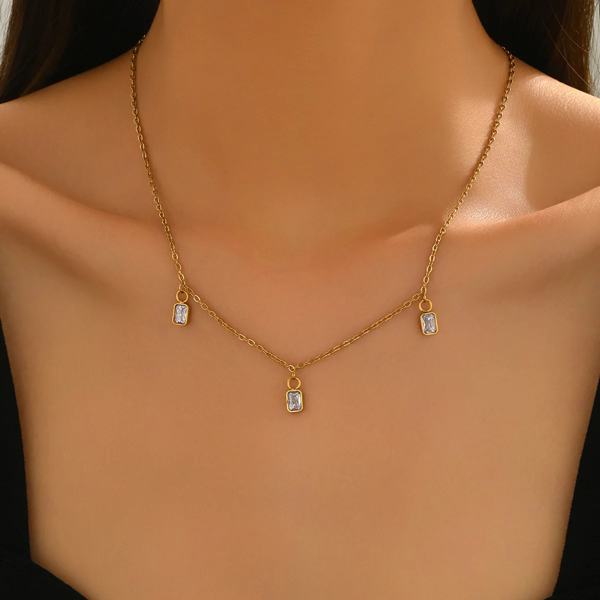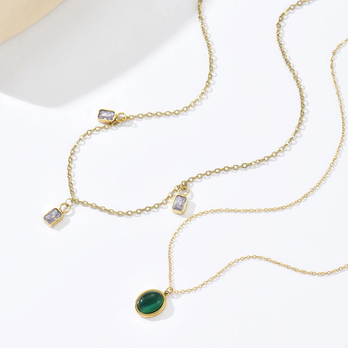 Women's European American Fashion Light Luxury Collarbone Chain Inlaid Green Cat's Eye Light Purple Zircon Necklace