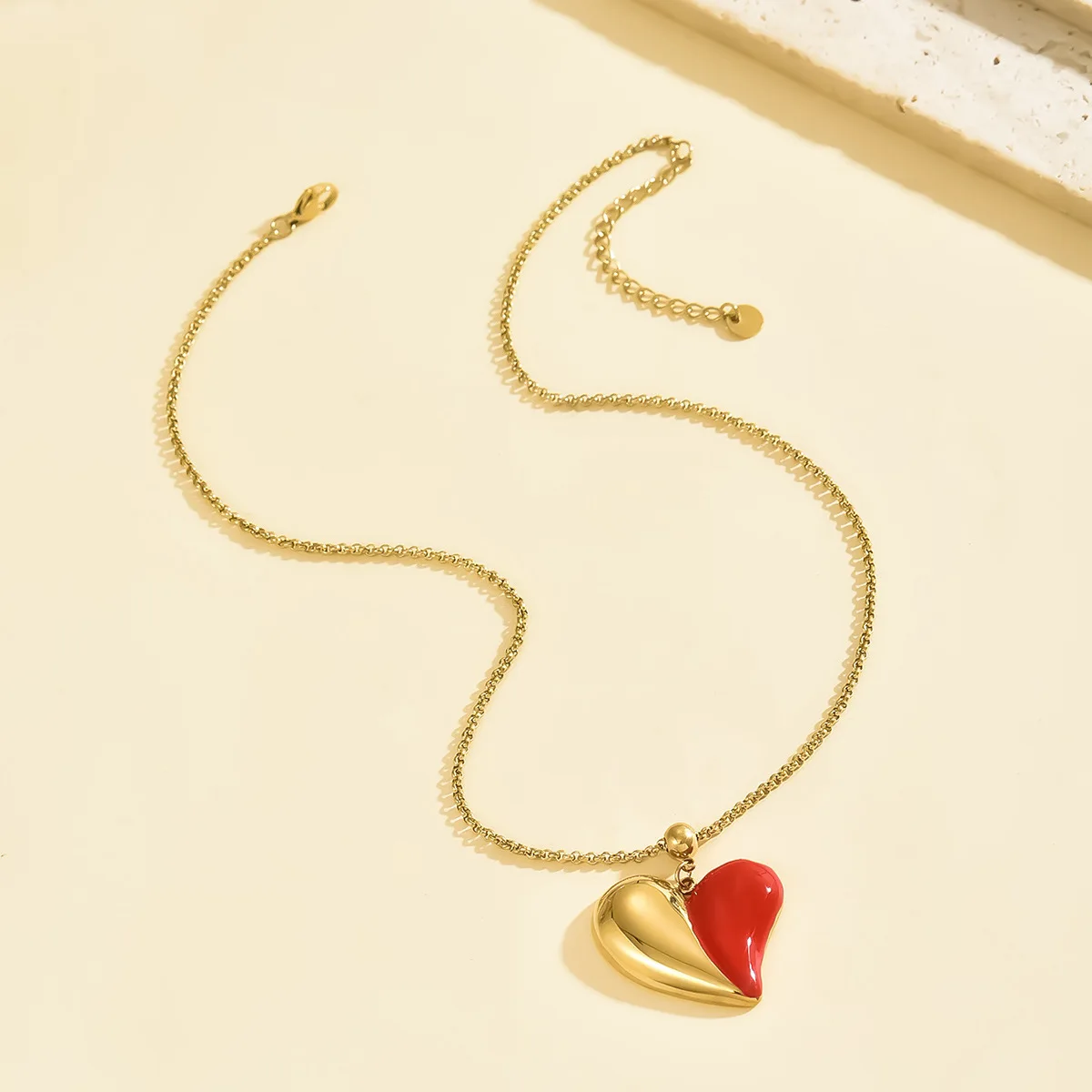 Love Women's Stainless Steel Hollow Oil Dropping Box Chain Personalized Plaid Electroplated Peach Heart Necklace