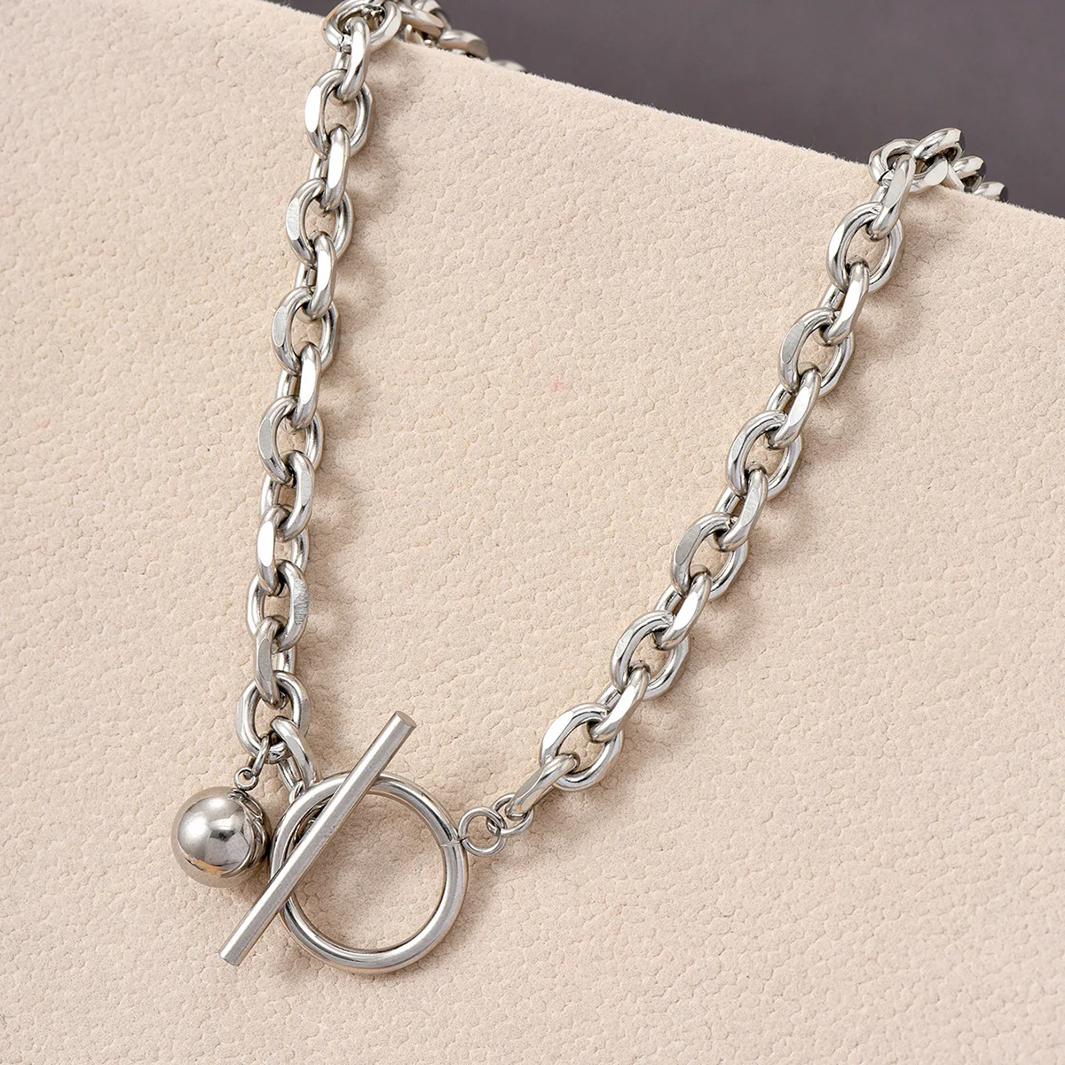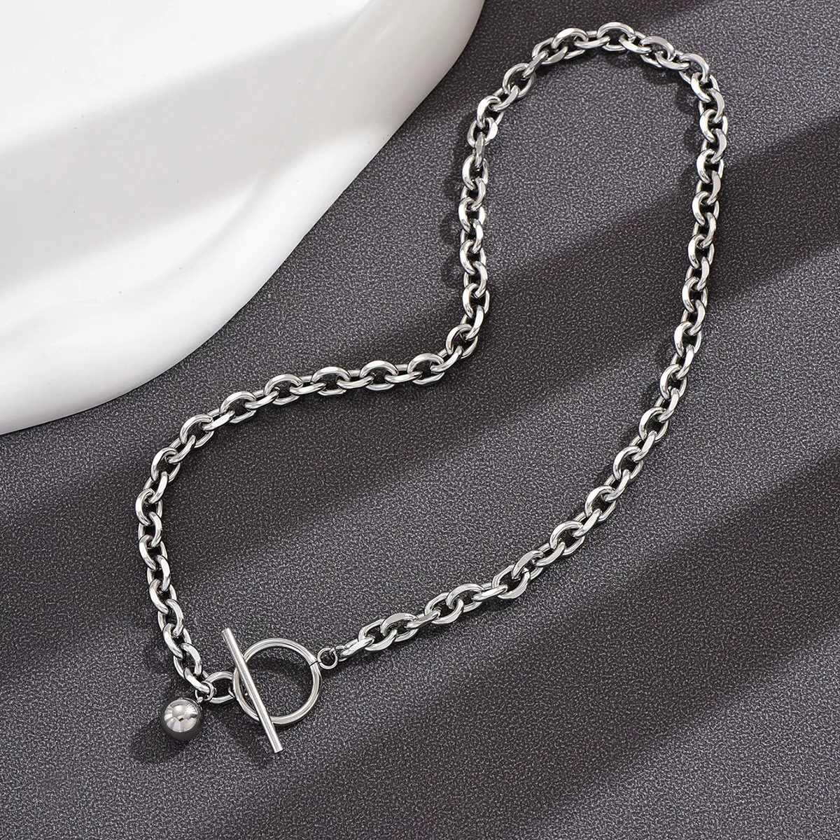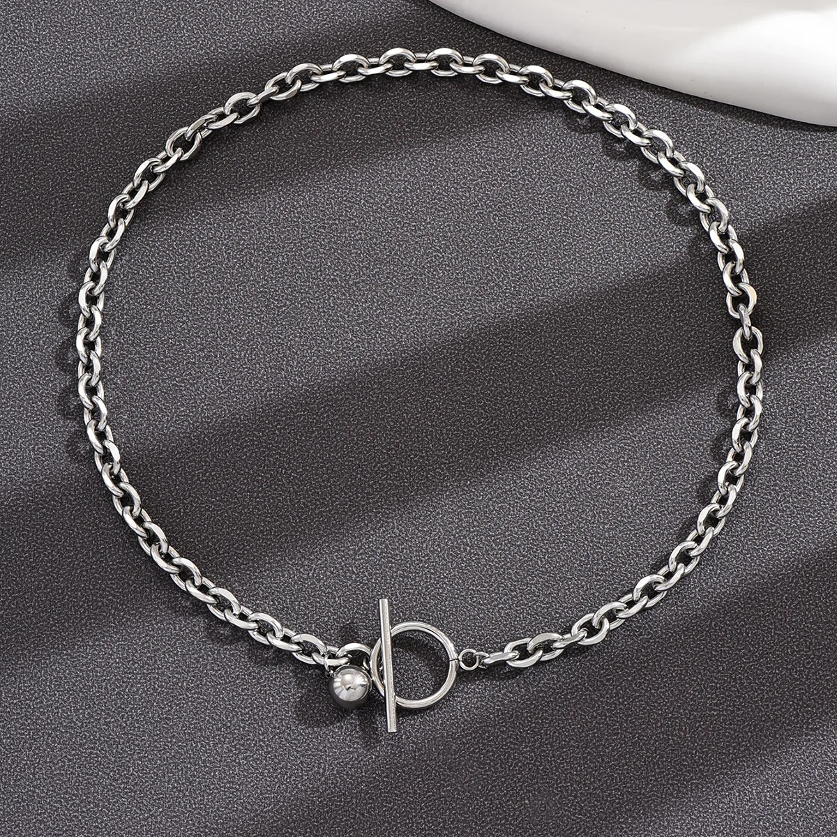 European American Simple Hong Kong Style Personalized Hip-Hop Thick Chain Small Ball Hollow Ot Buckle Unisex Necklace Ins Chain