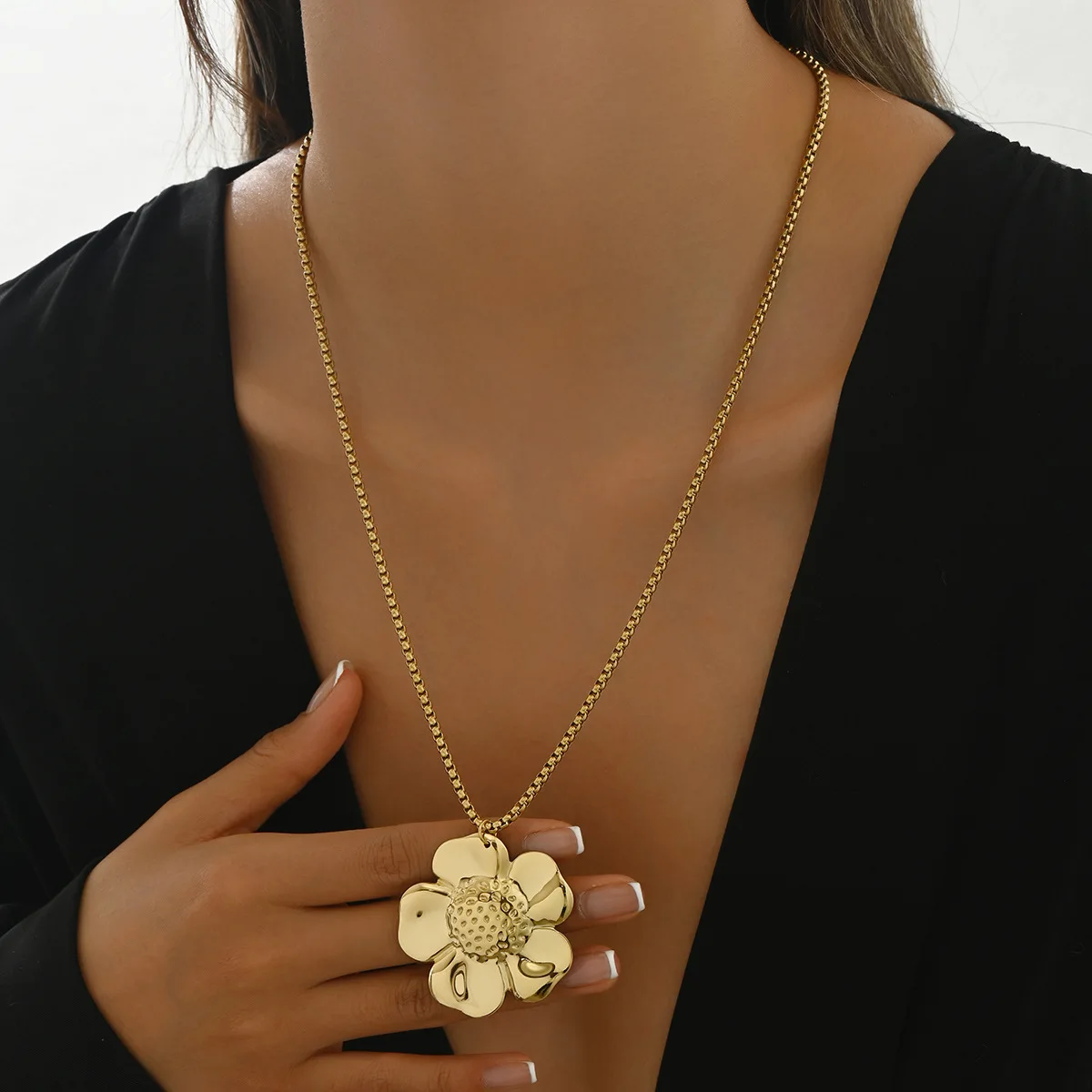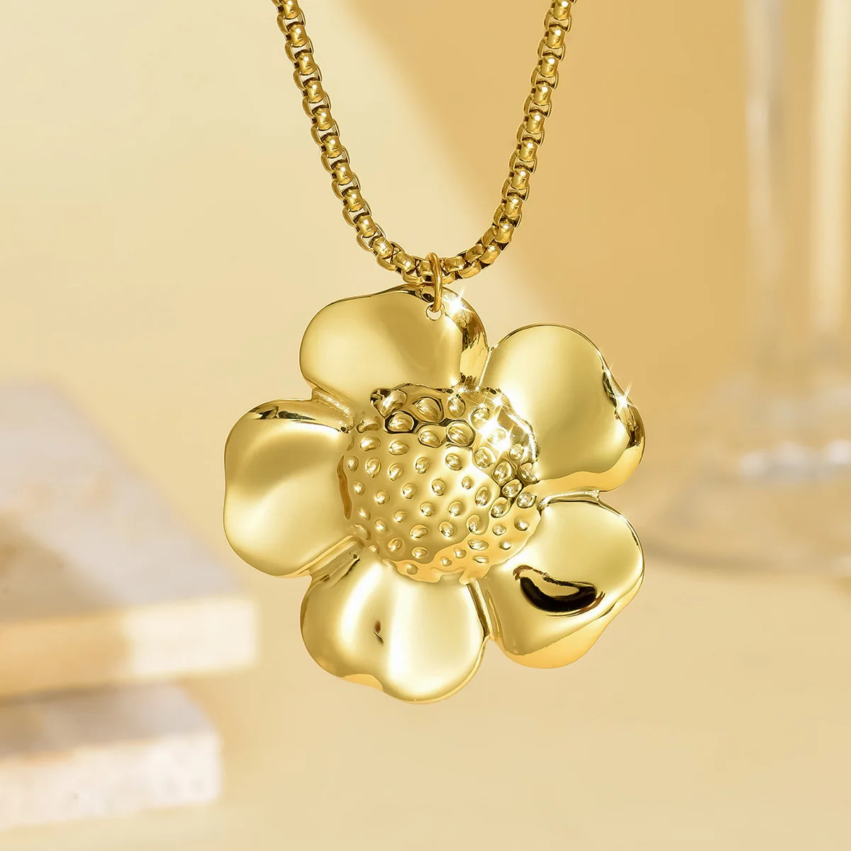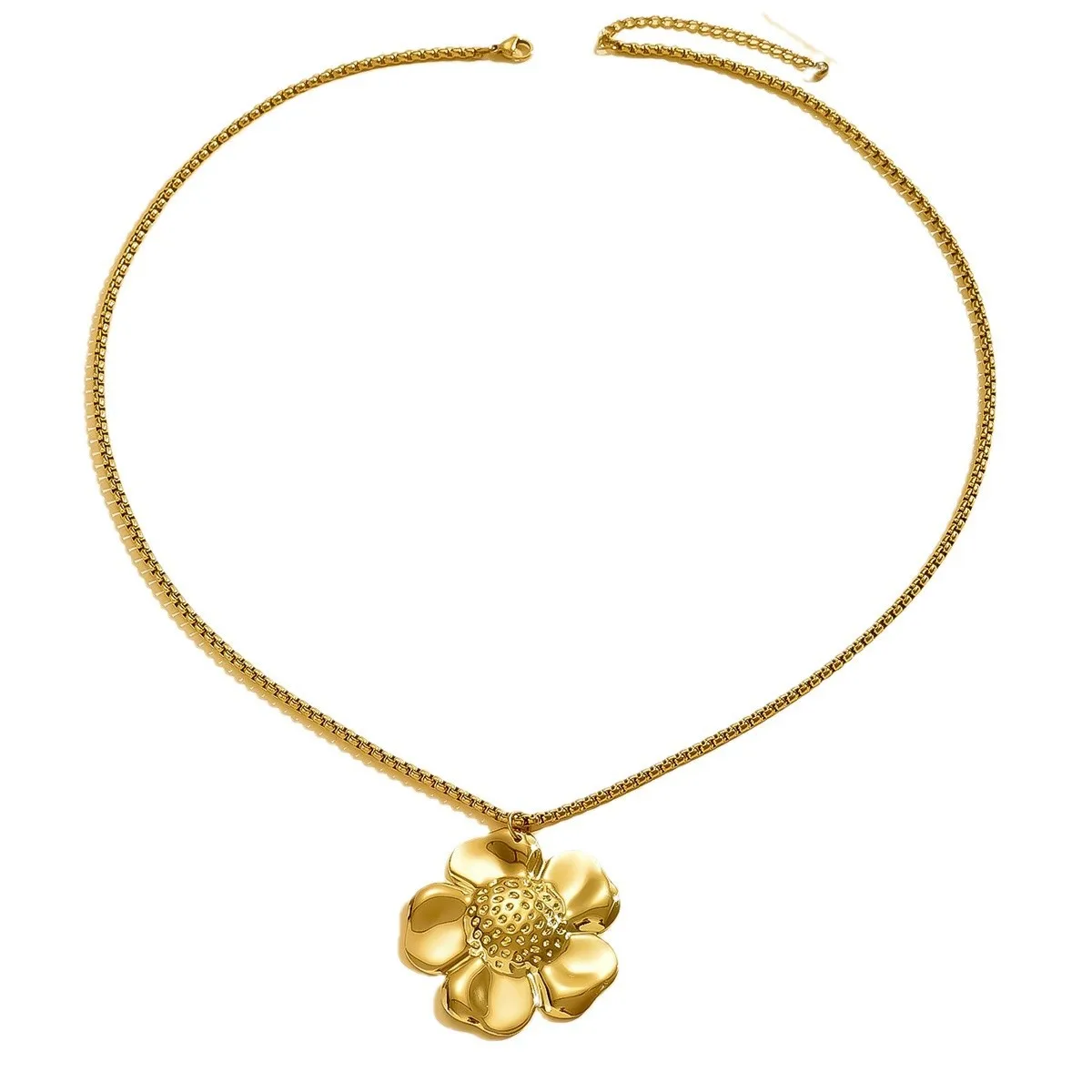 Exaggerated Big Flower Vintage Stainless Steel Gold Plated Women's Europe America Style Necklace Pendant Sunflower
