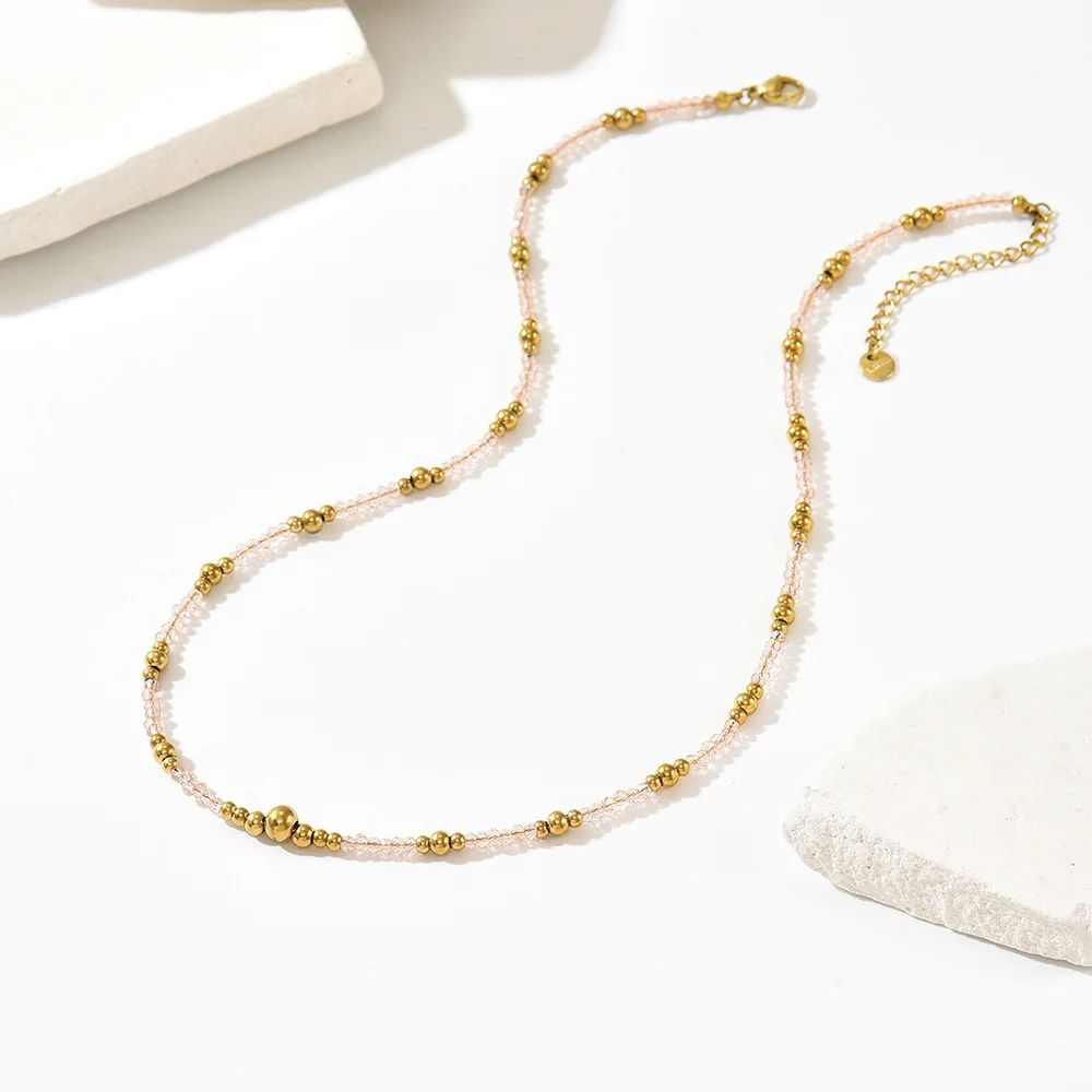 Simple Fashion Ball Beaded Stainless Steel Women's Sporty Necklace Ximi Asian Style European American Jewelry