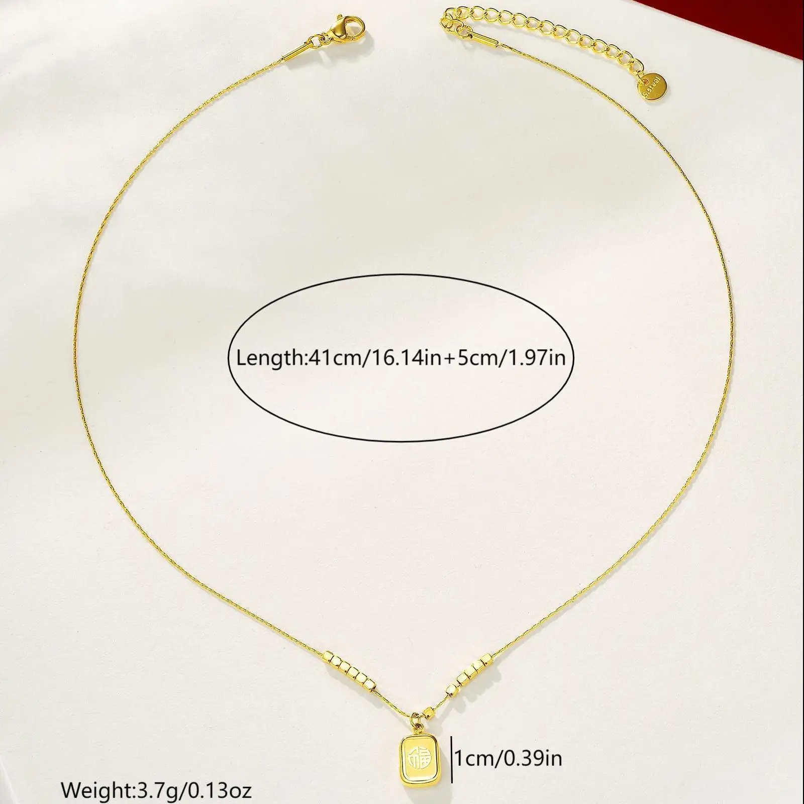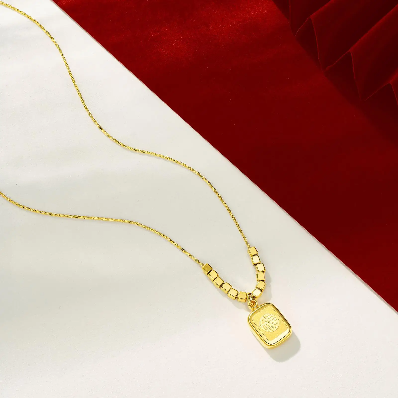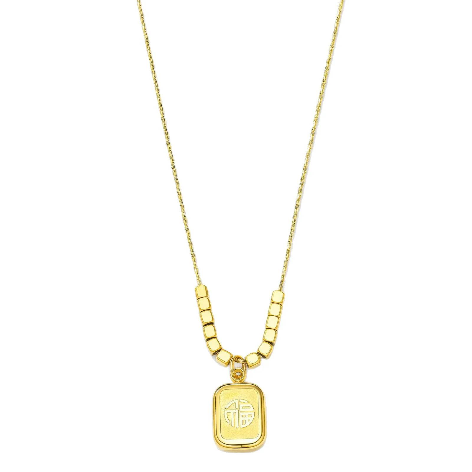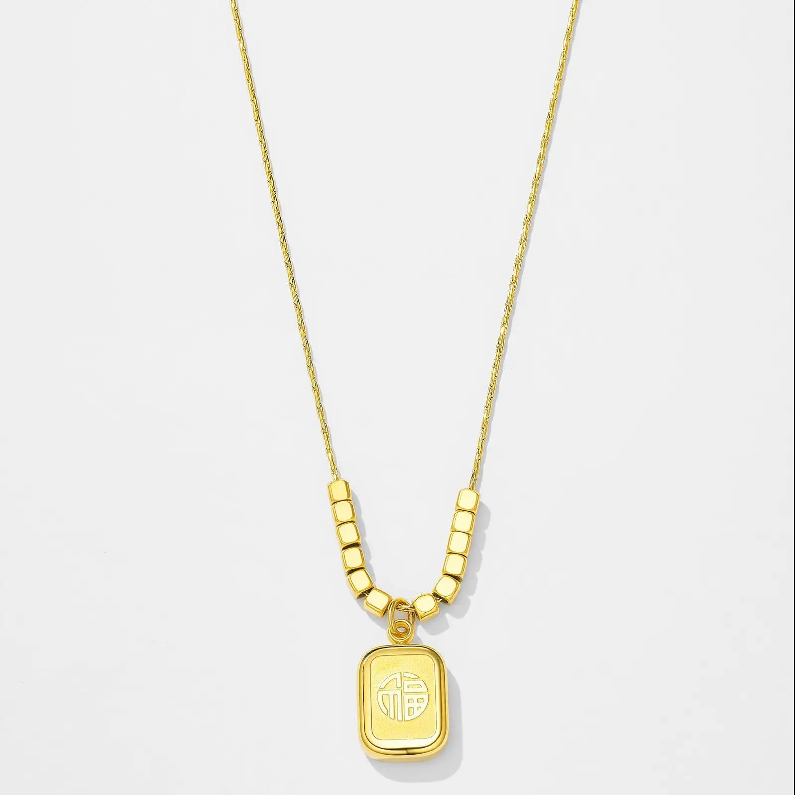 Guofeng Plated 24K Jinfu square Pendant Necklace Fashion Small Bamboo Chain Stainless Steel Jewelry Wholesale Sporty Unisex