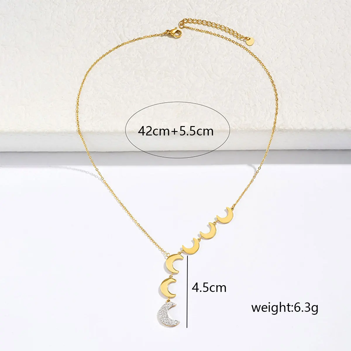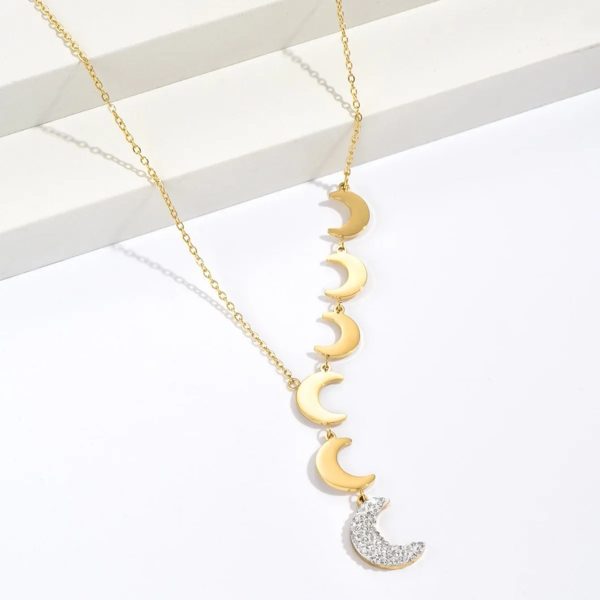 Women's Europe United States New Stainless Steel Smooth Moon Design Bamboo Chain Simple Luxury Pendant Necklace
