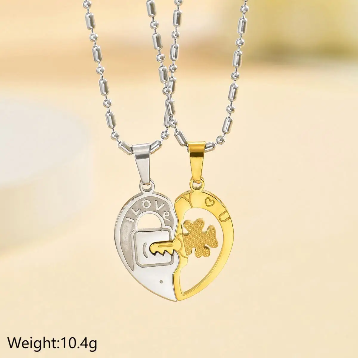 New European American Fashion Personalized Double-layer Stainless Steel Bamboo Chain Necklace Stitching Key Pendant