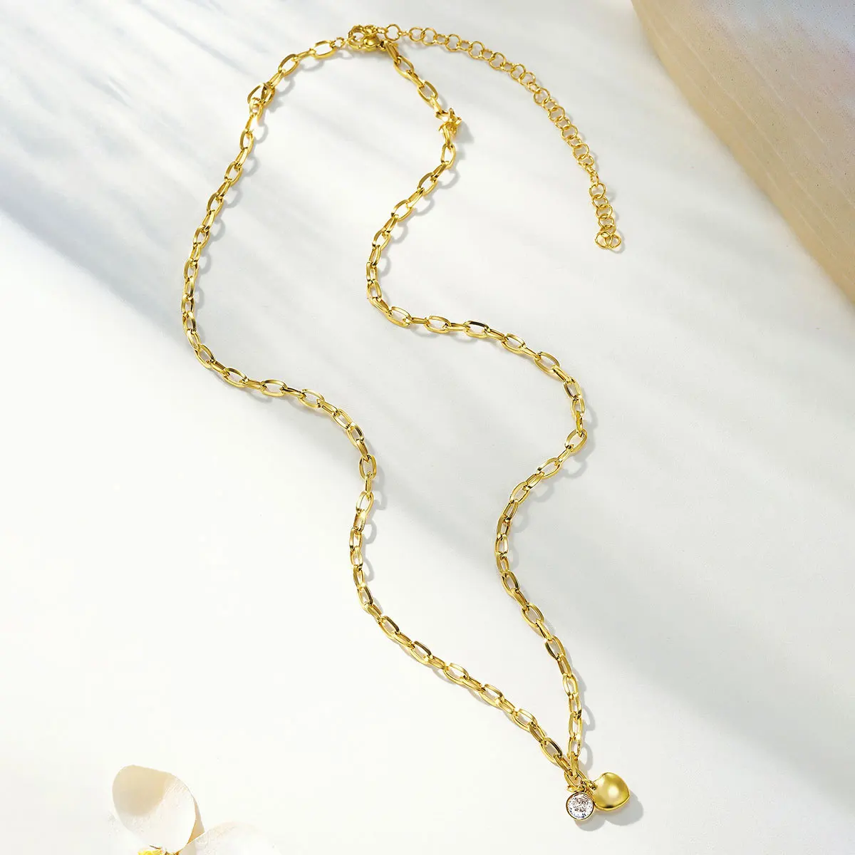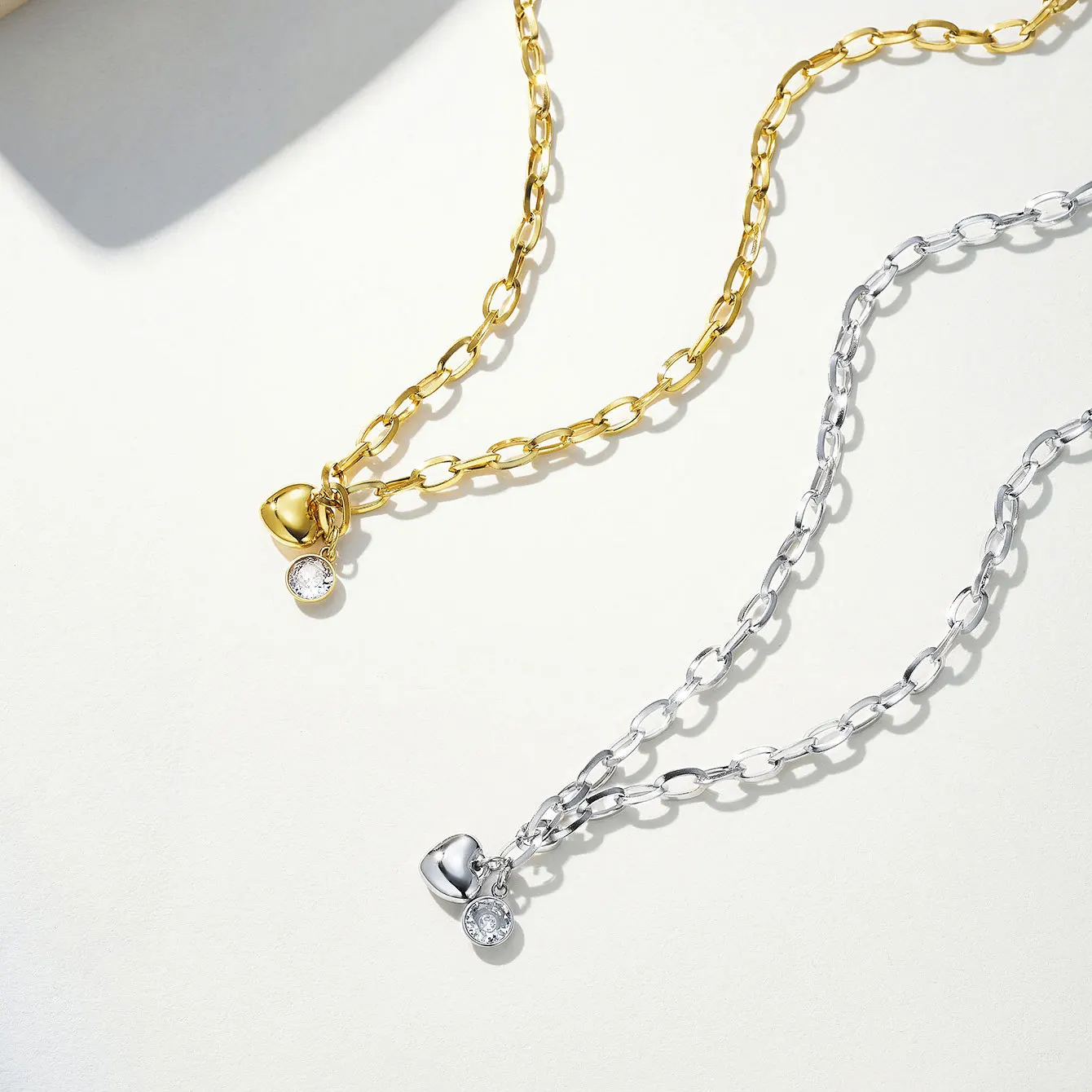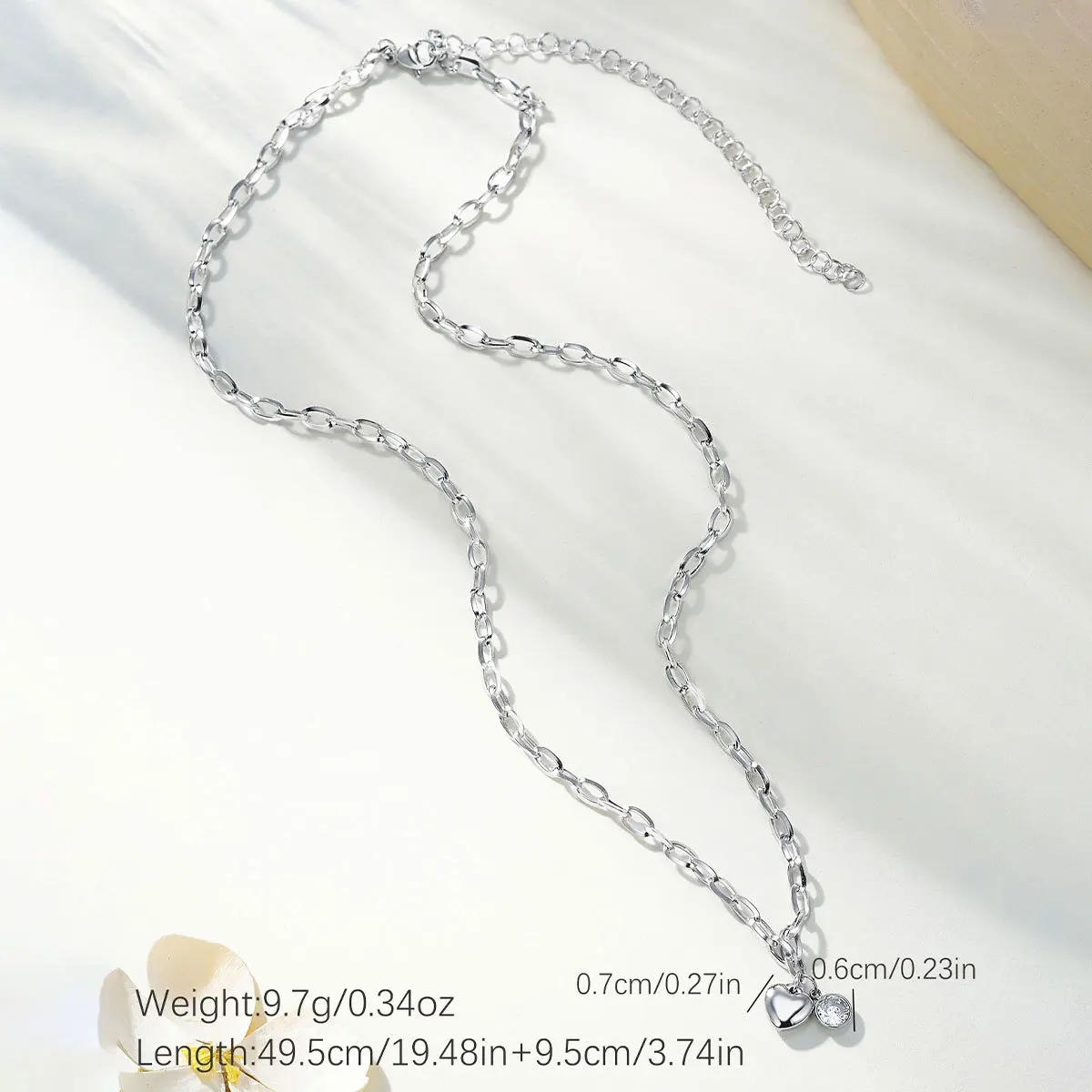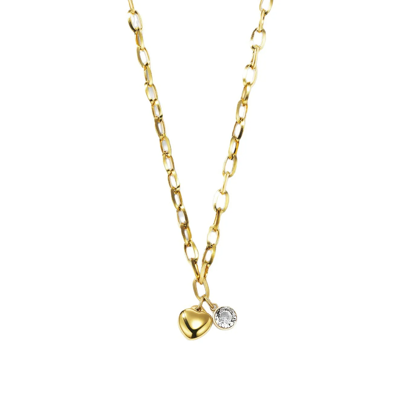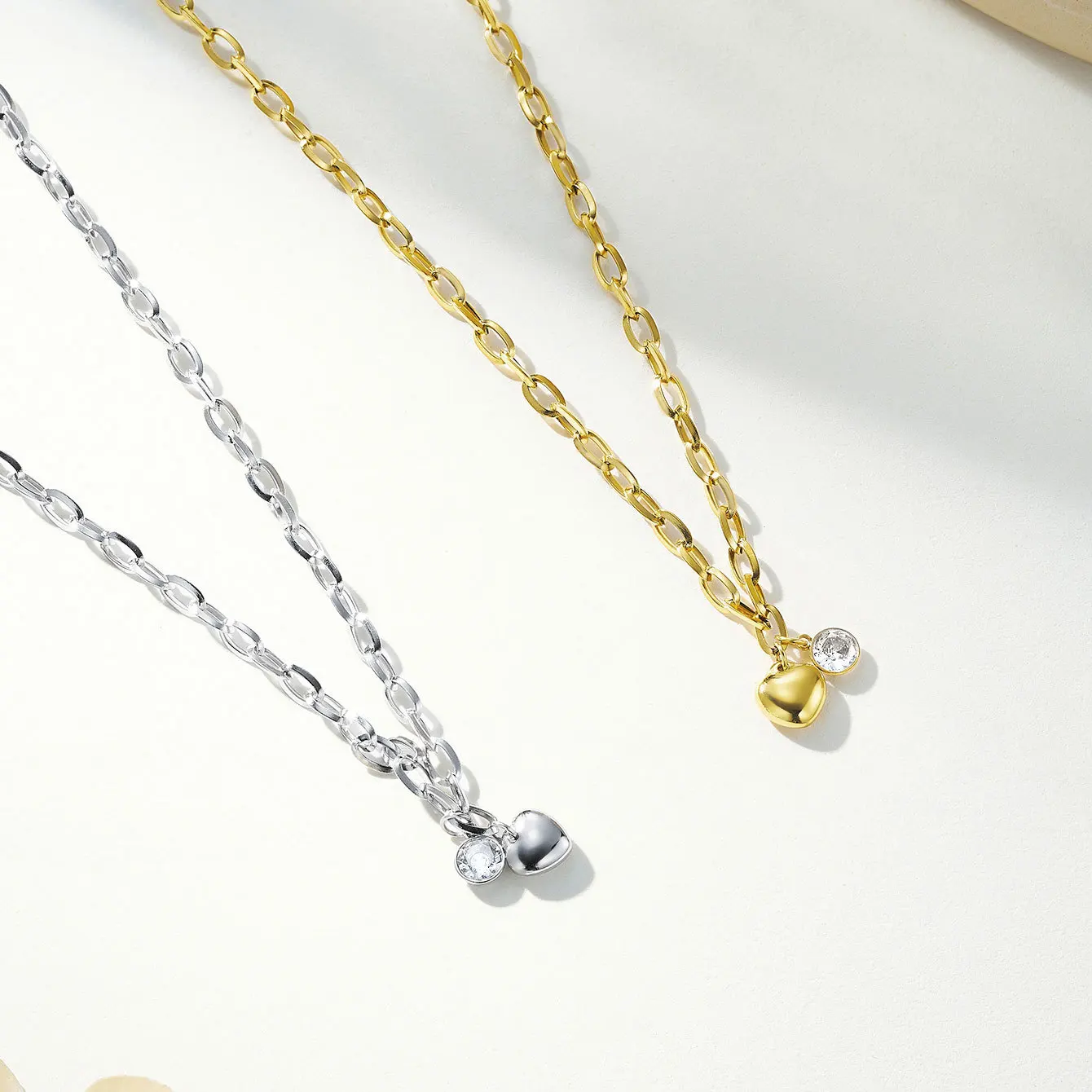 European American Fashion Simple Jewelry Love Heart Pendant Zircon Embellished Electroplated Stainless Necklace