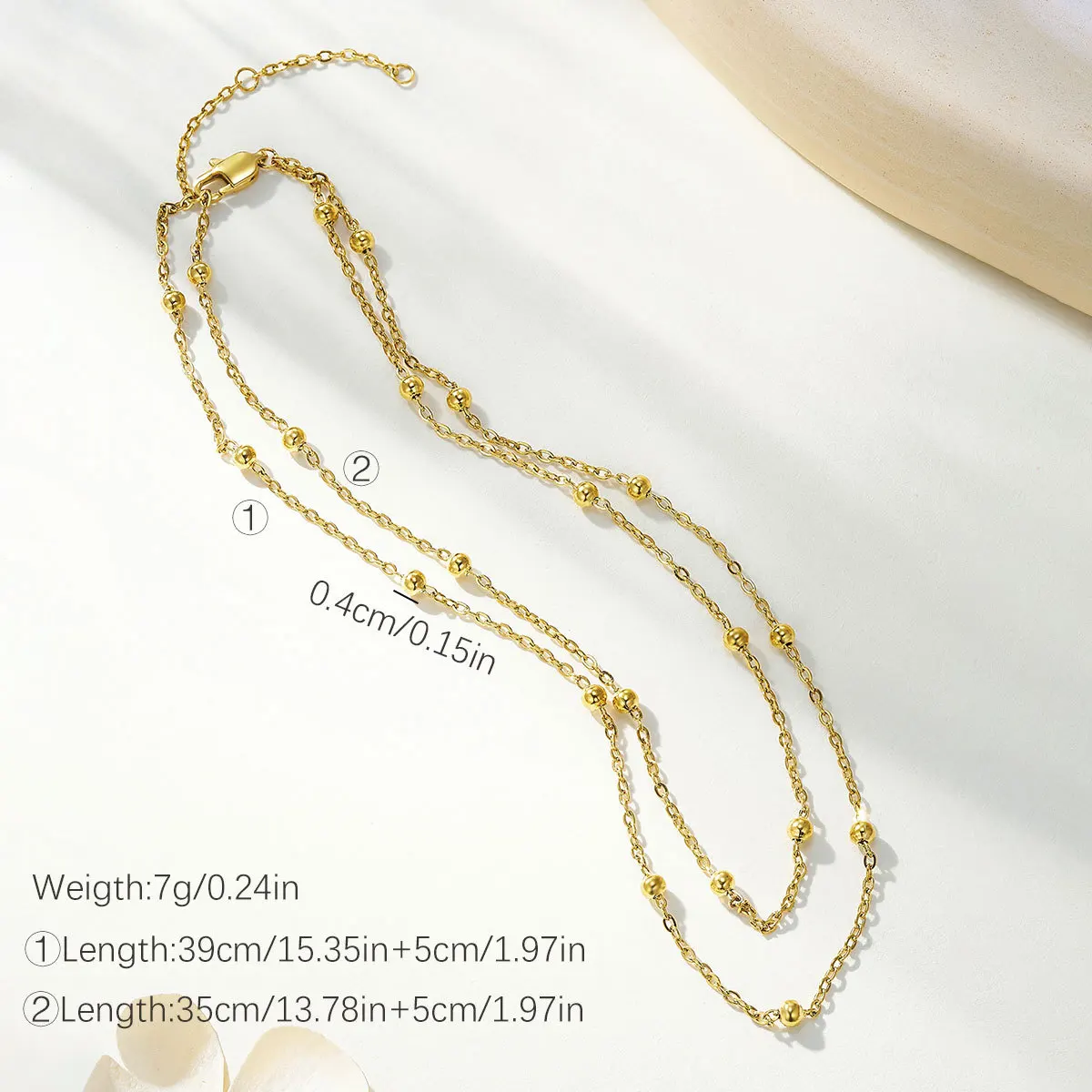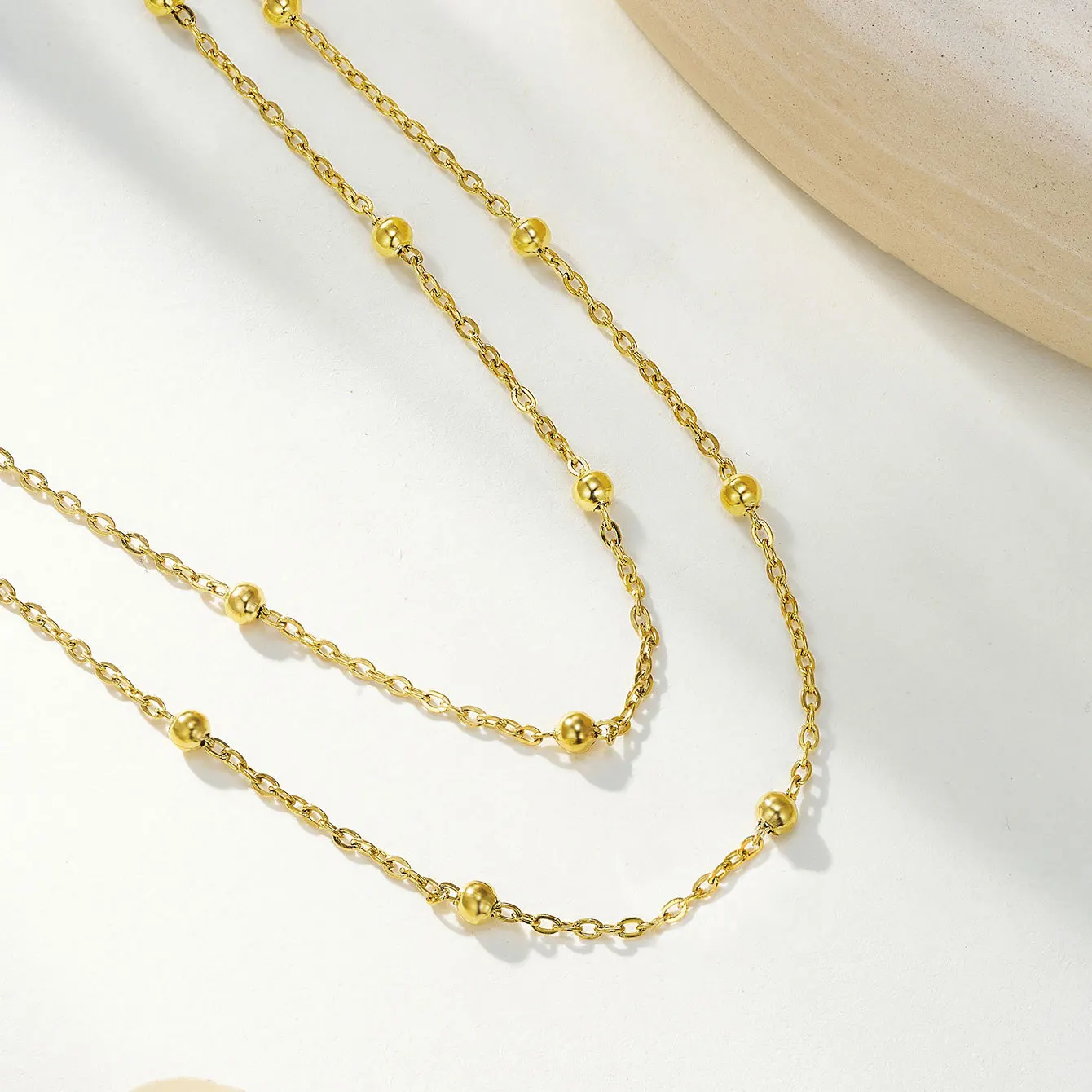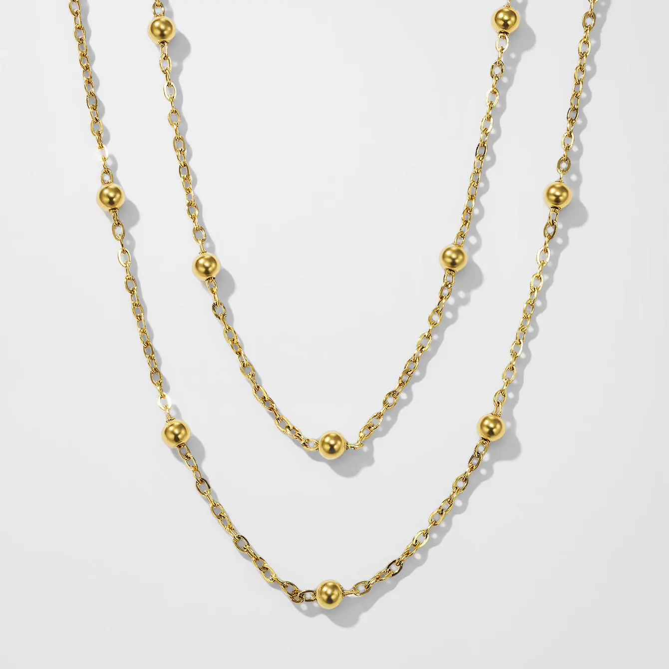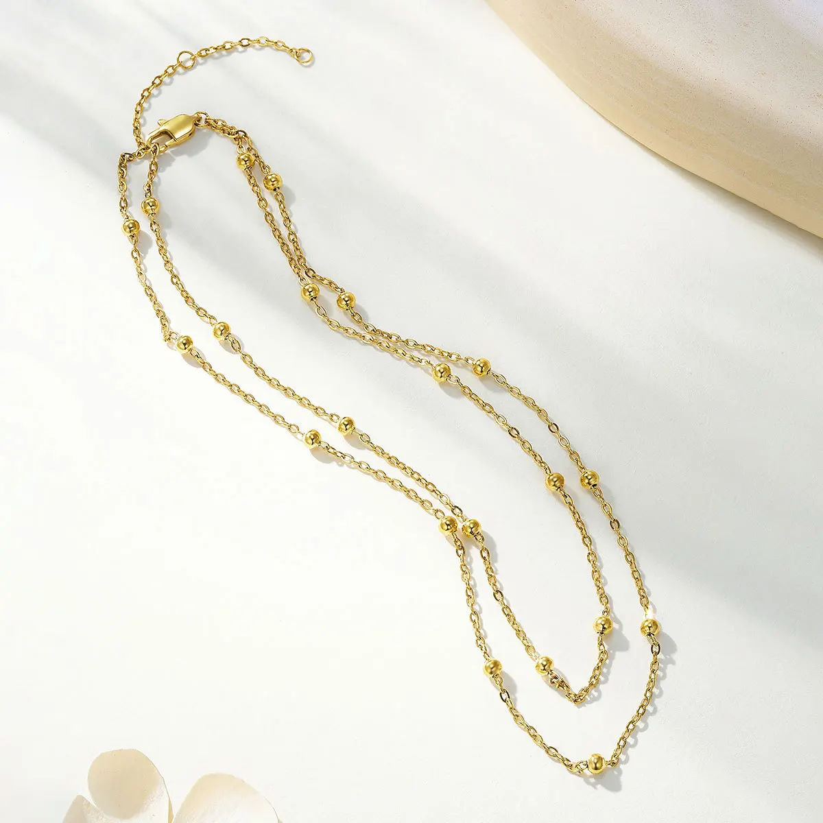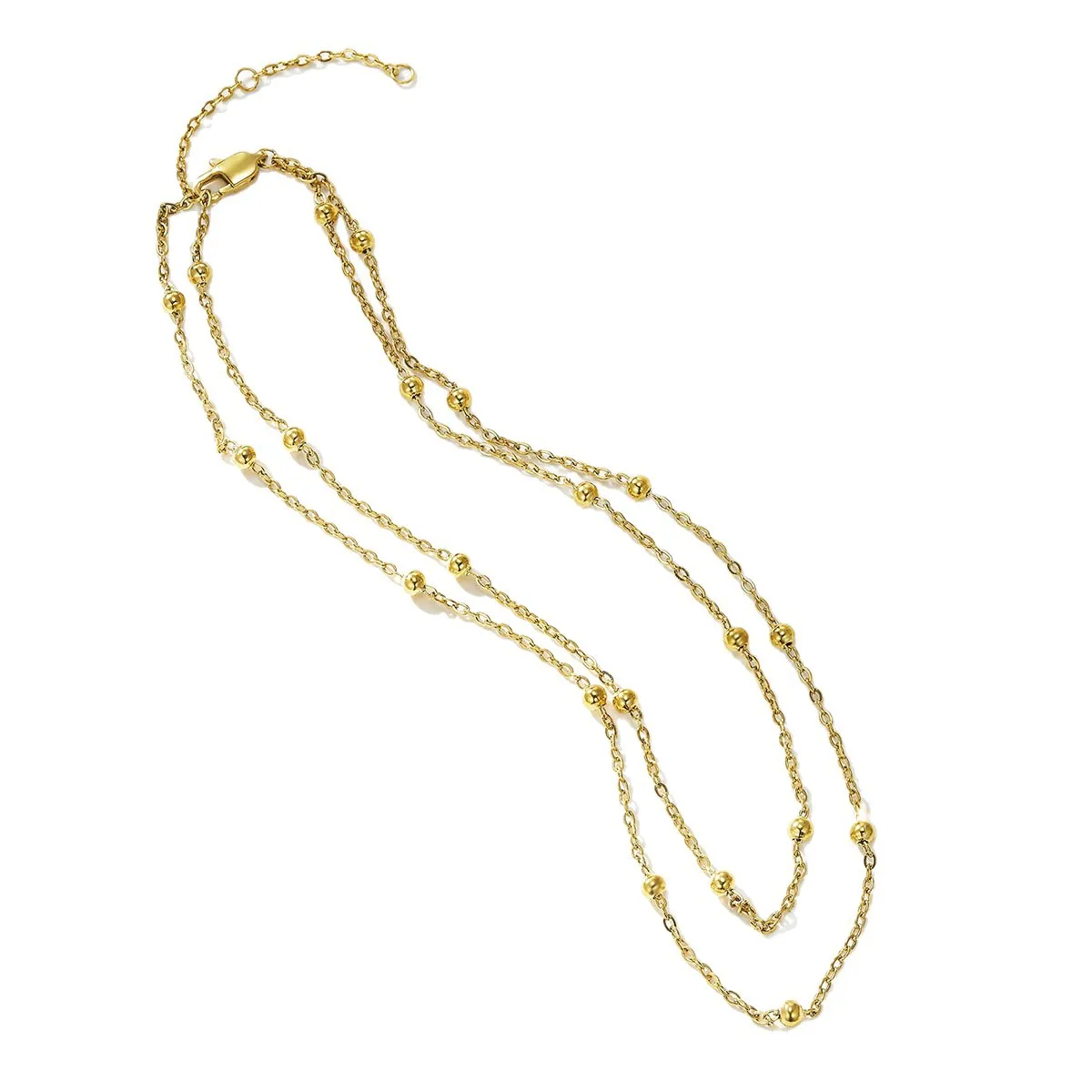 Fashion Jewelry Double Gold Steel Bead Interval Embellishment 18K Gold-plated Sporty Necklace Stainless Steel Chain