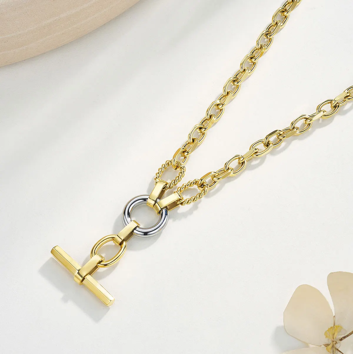 Europe United States Hot 18k Gold Plated Stainless Steel Clavicle Chain Sporty Unisex Joker OT Buckle Fashion Necklace Wholesale