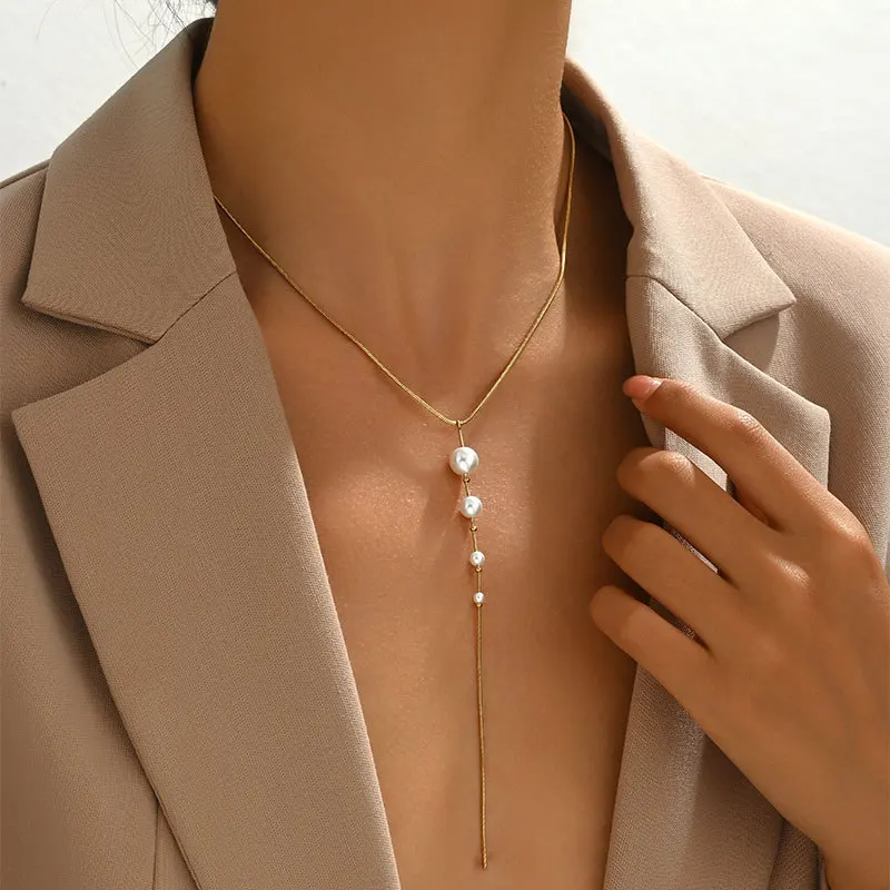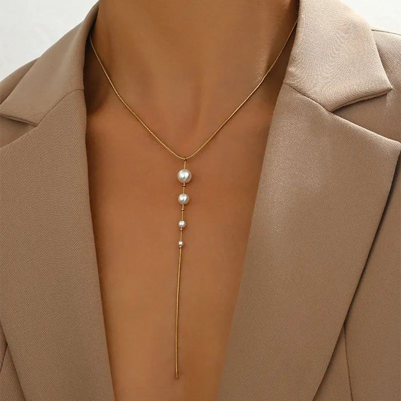 European American Stainless Steel Court Style Tassel Necklace Niche Light Luxury High-grade Retro Design Women's