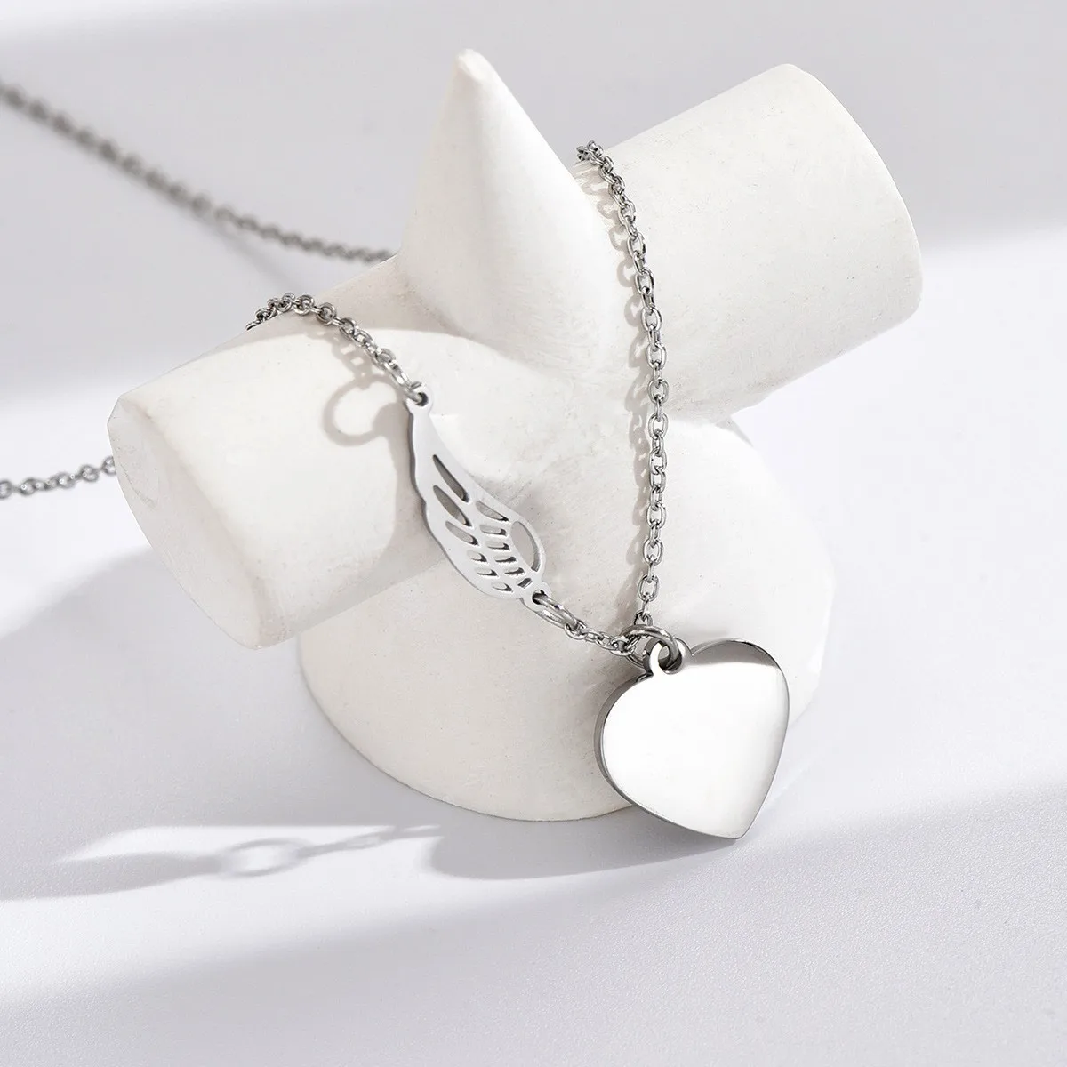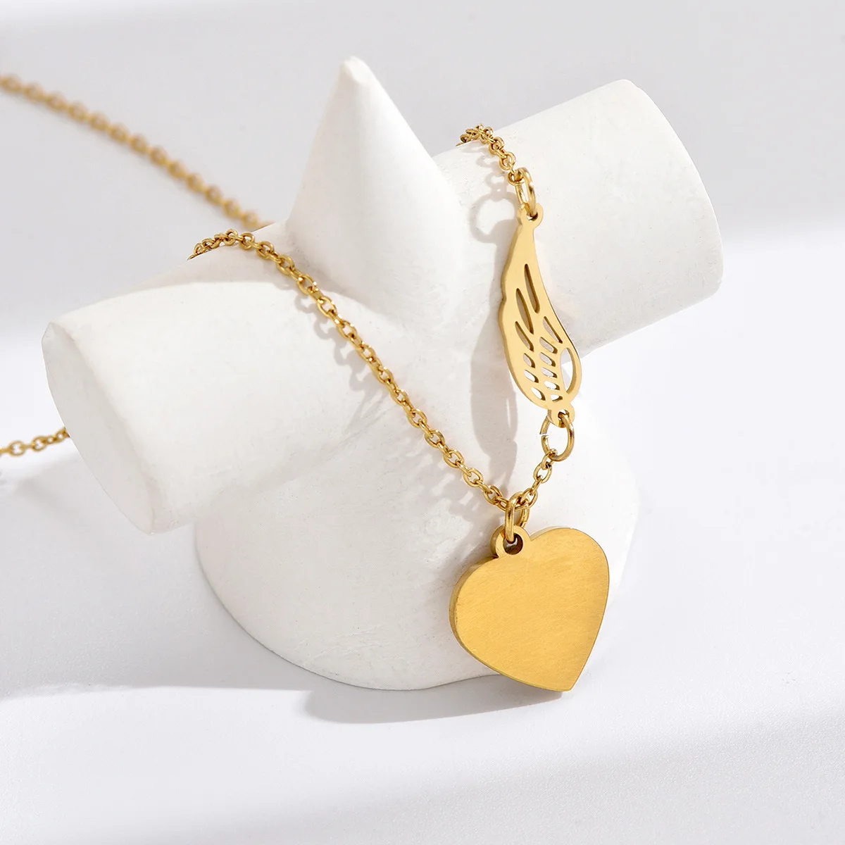 Women's European American Fashion Stainless Steel Leaf Peach Heart Pendant Necklace Simple Versatile Design Heart-Shaped