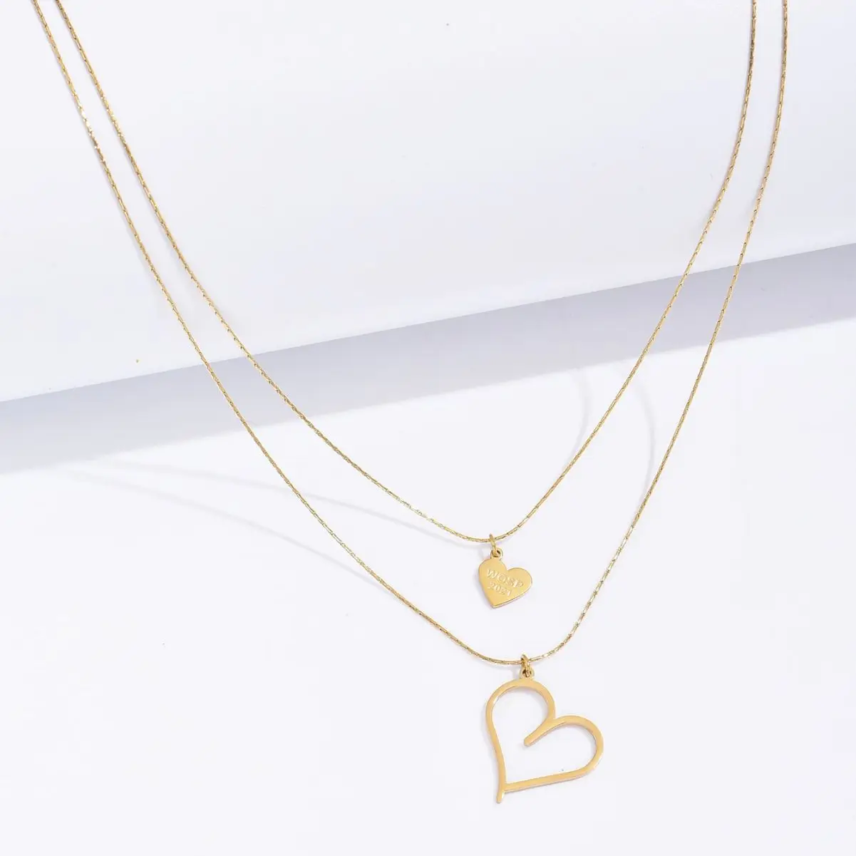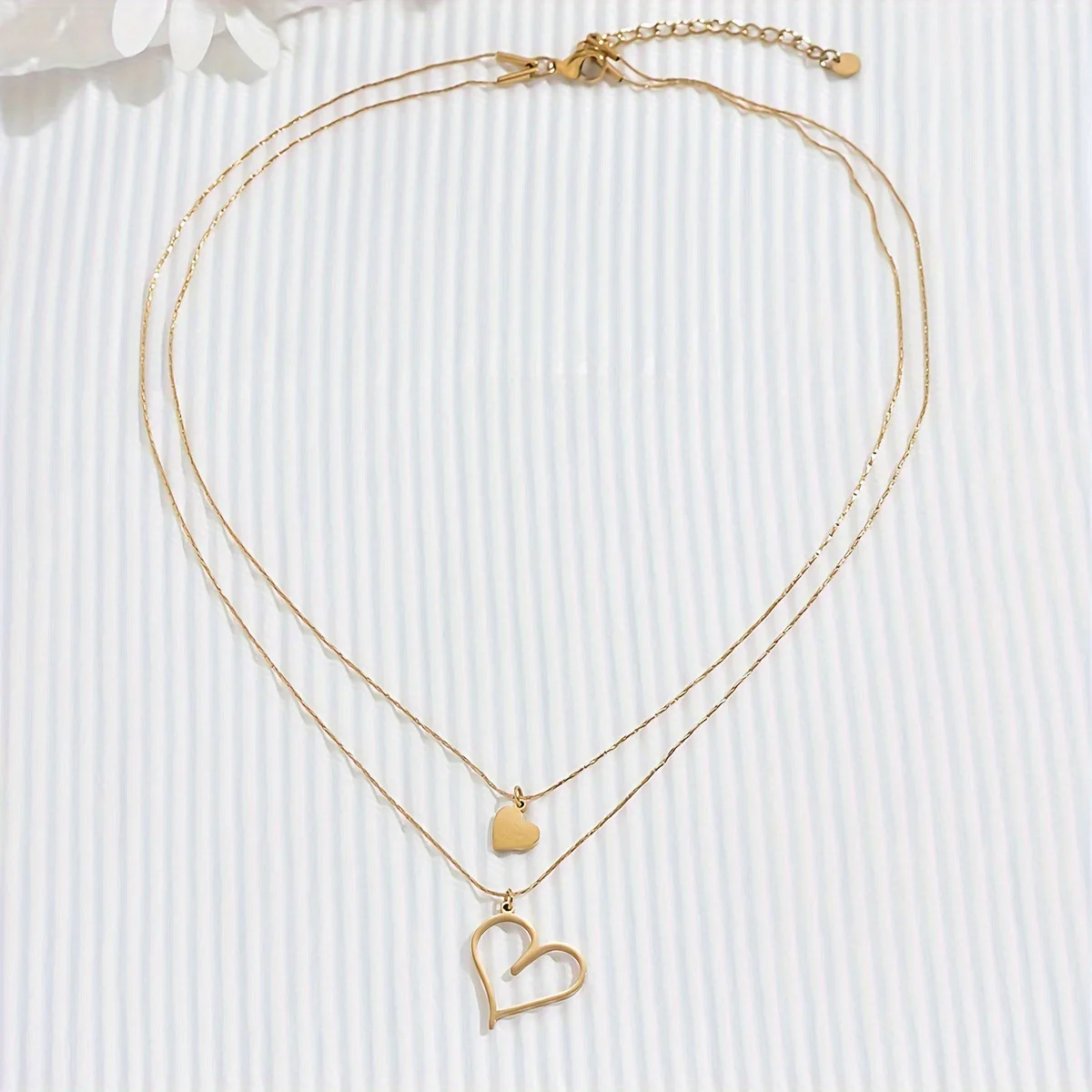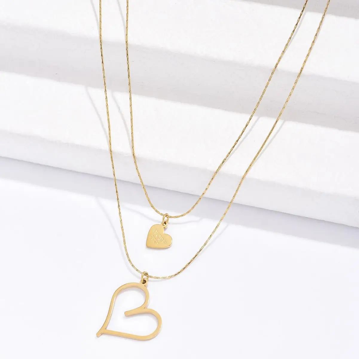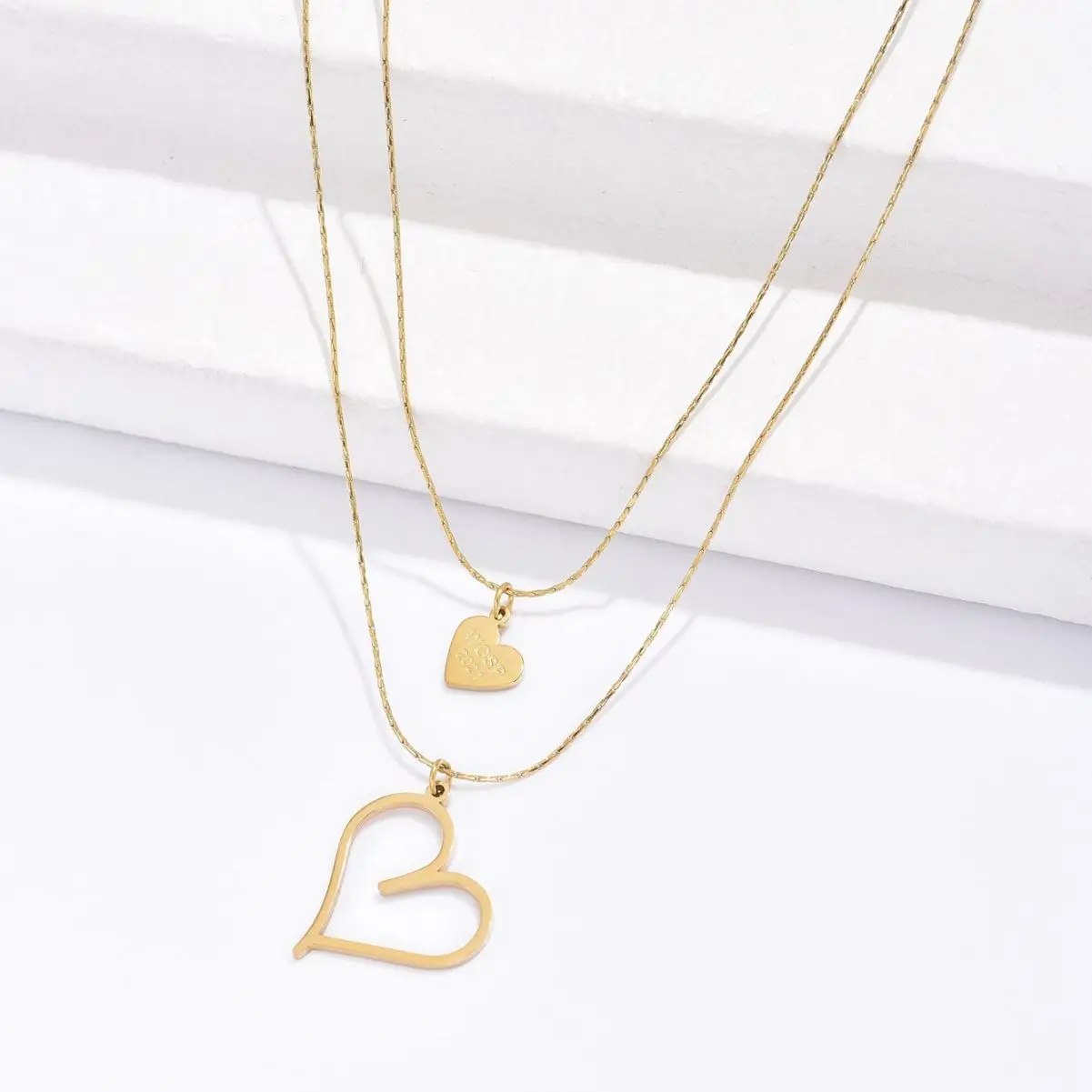 European American Fashion Stainless Steel love Heart element Stacked Pendant Necklace Bamboo Chain Simple Light Luxury Versatile