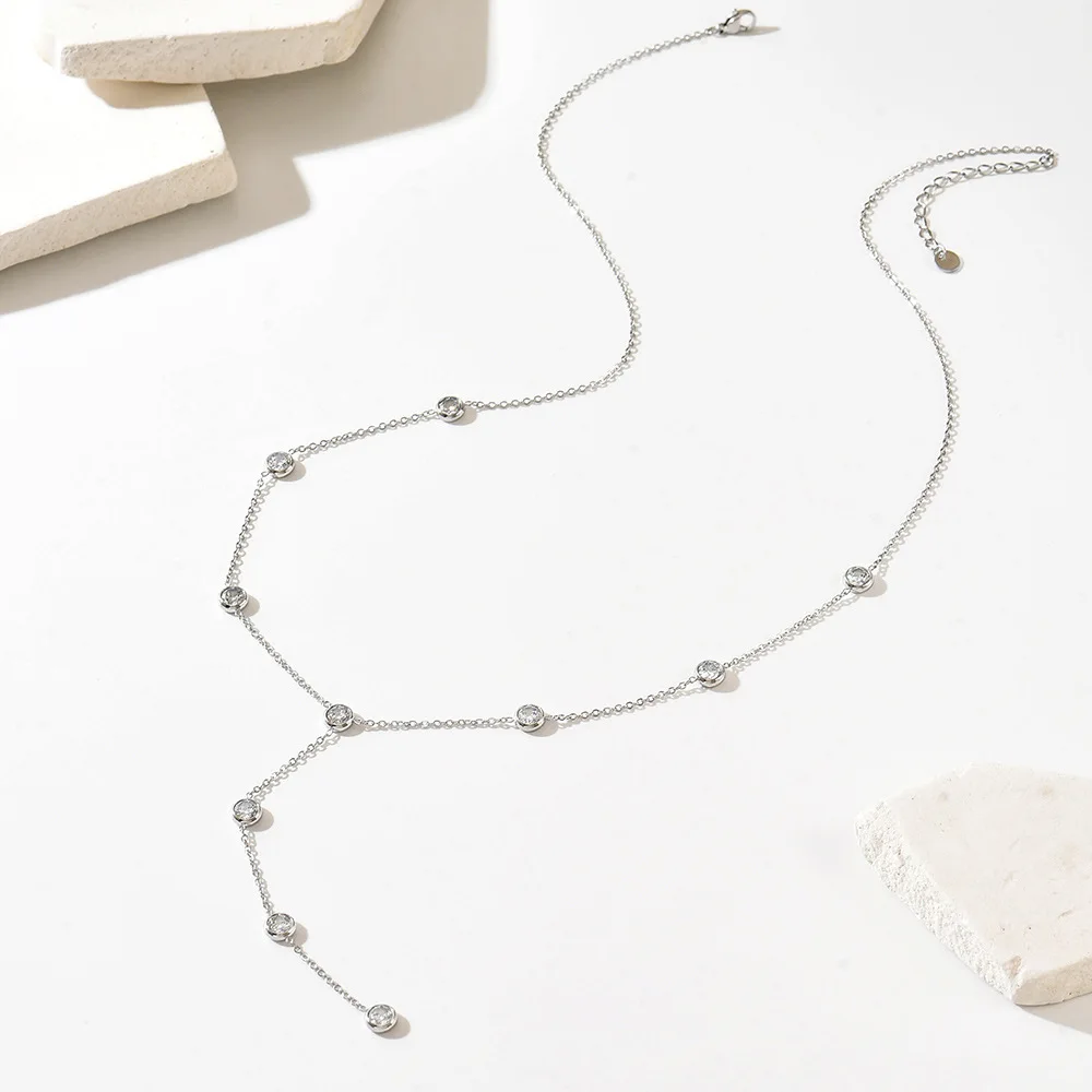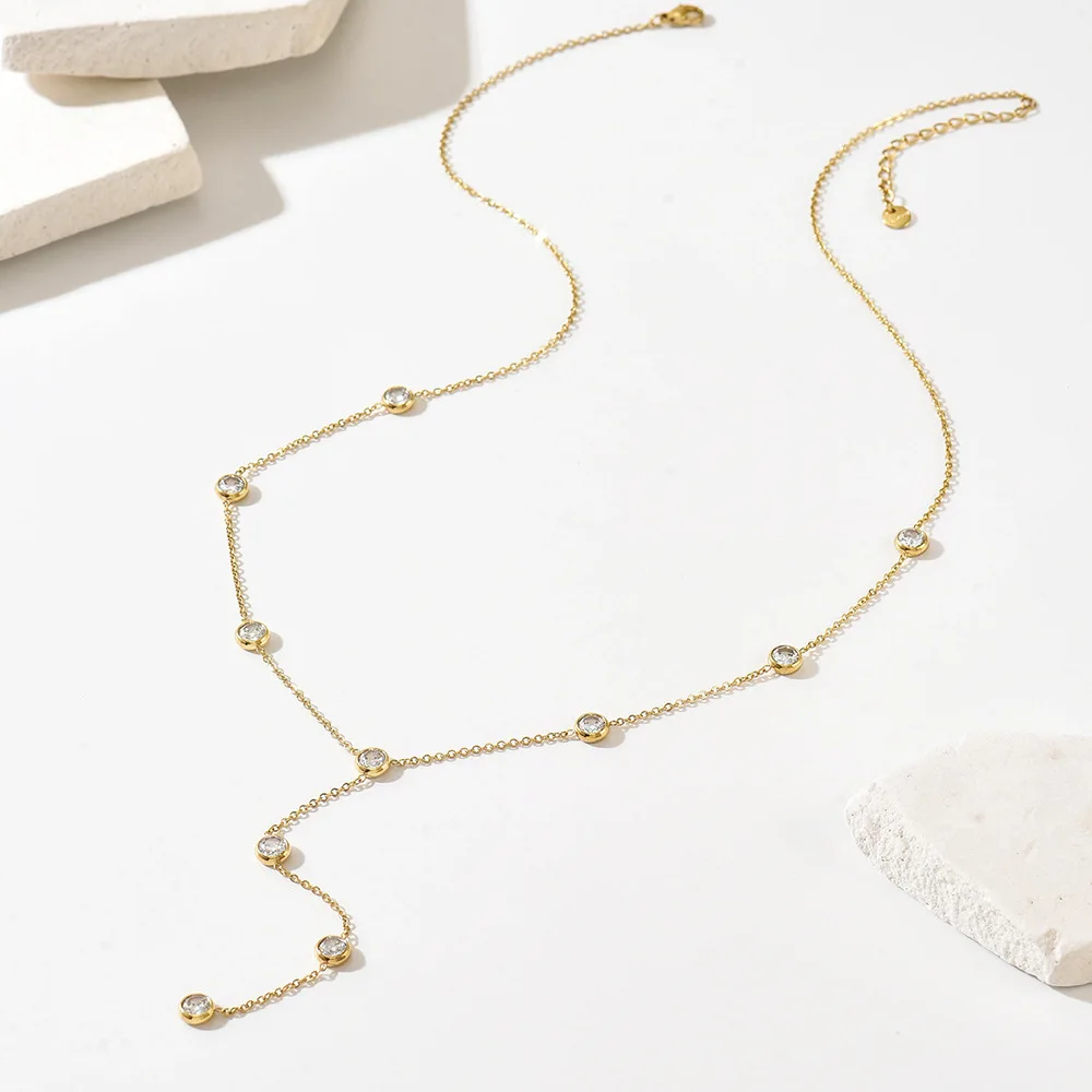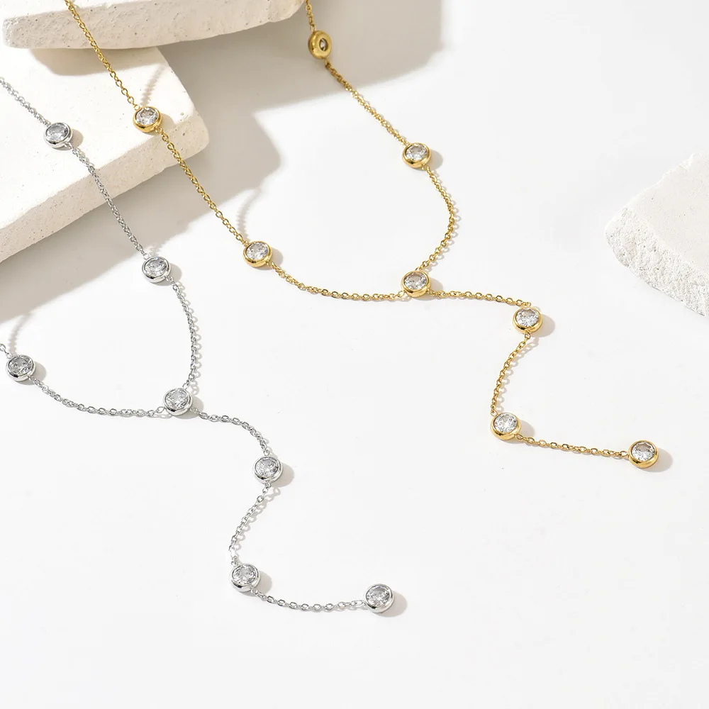 European American Light Luxury Women's Sporty Y-shaped Zircon Tassel Lariat Necklace Stainless Steel Clavicle Chain