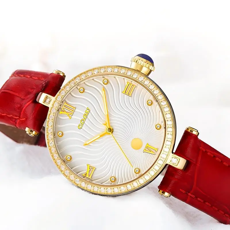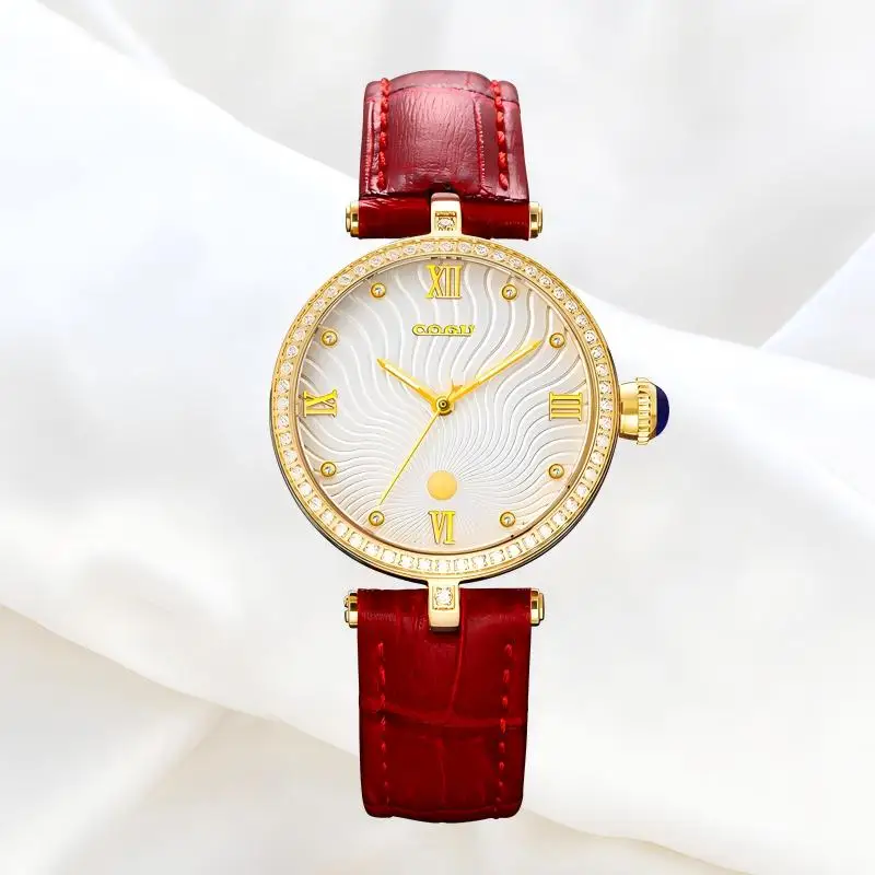 Women's Minimalist Quartz Watch Sparkling Design 37mm Dial Displaying Pointers 16mm Leather Band Width Miyota Fashion Type