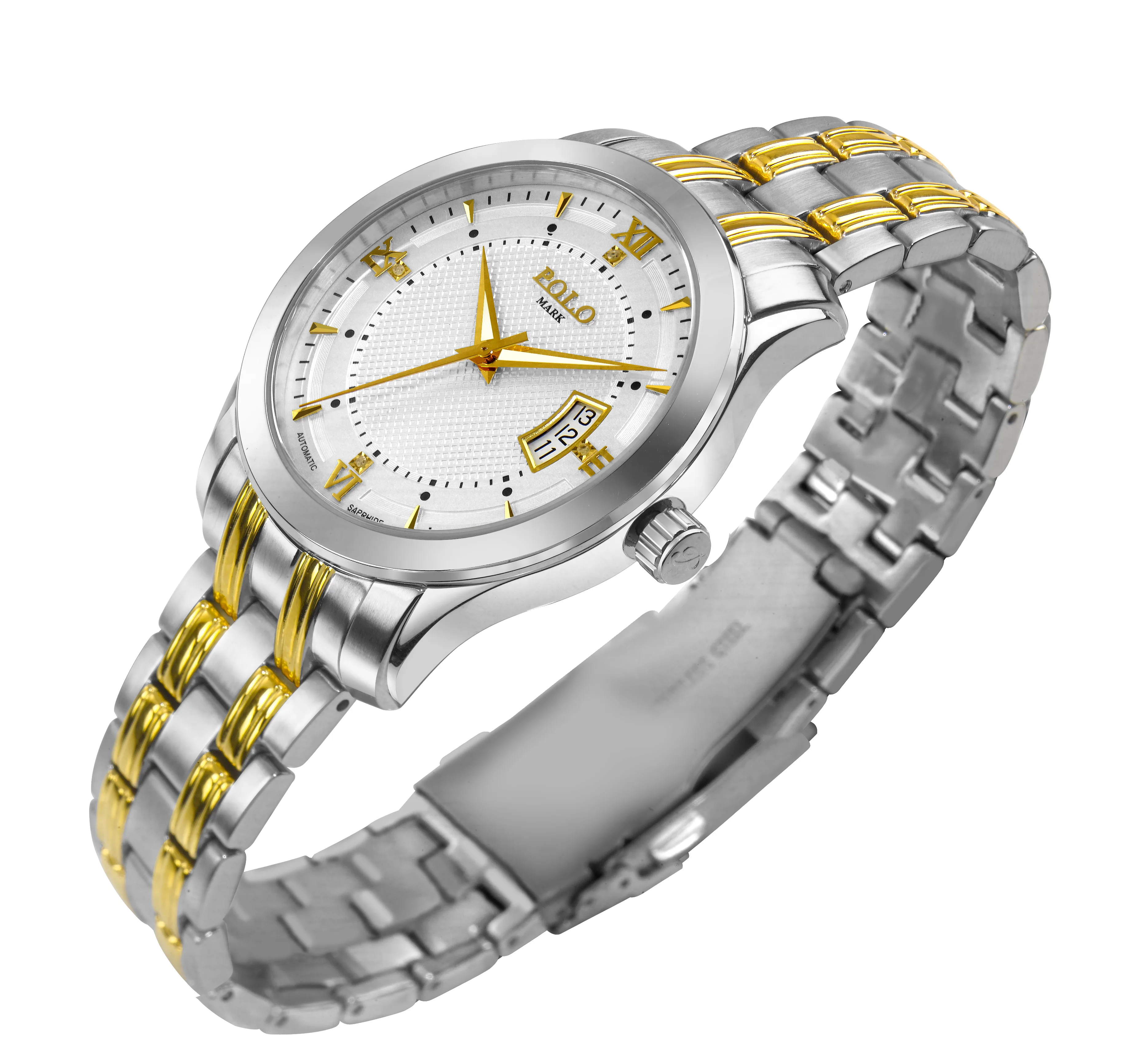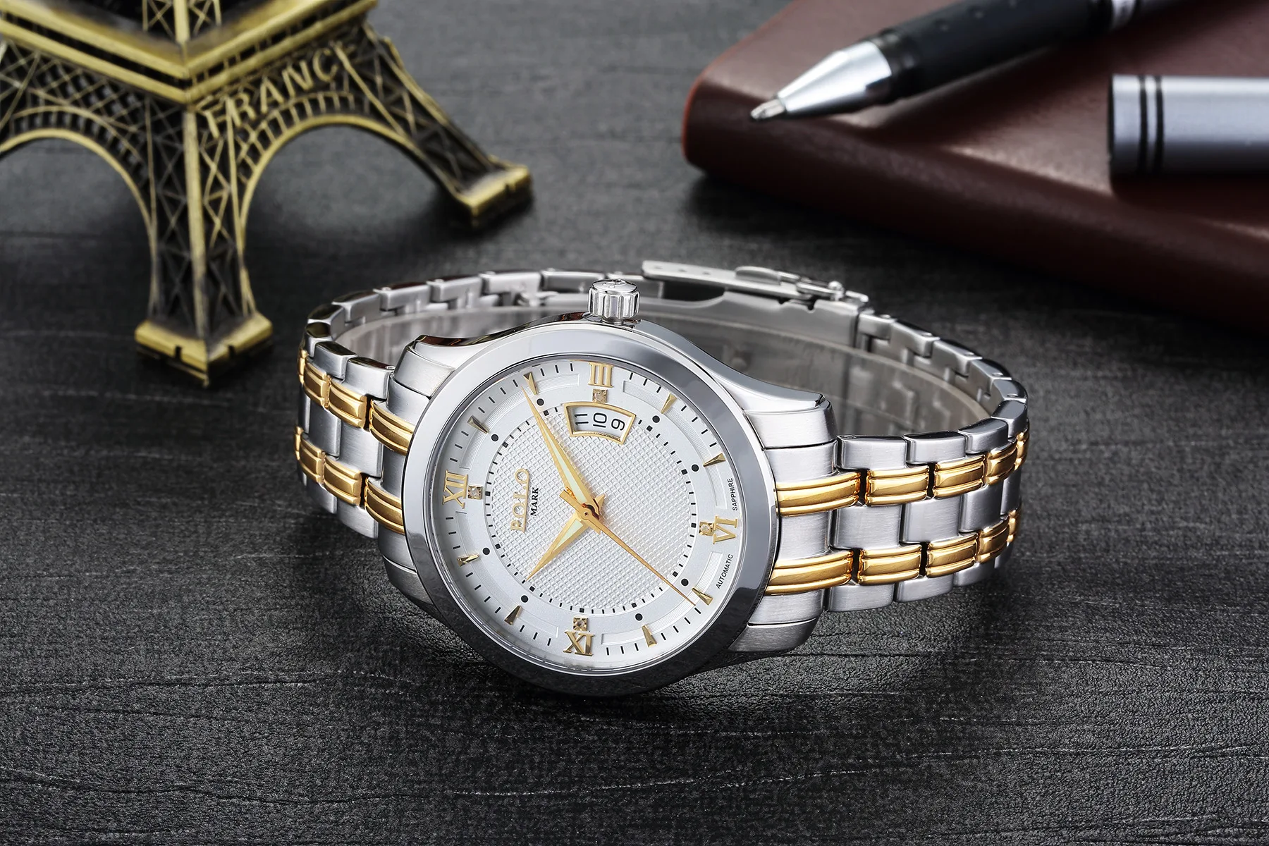 Royal Elegance Mechanical Watch Classic Luxury High Quality Stainless Steel Band 22mm Water Resistant Power Reserve Pointer Dial