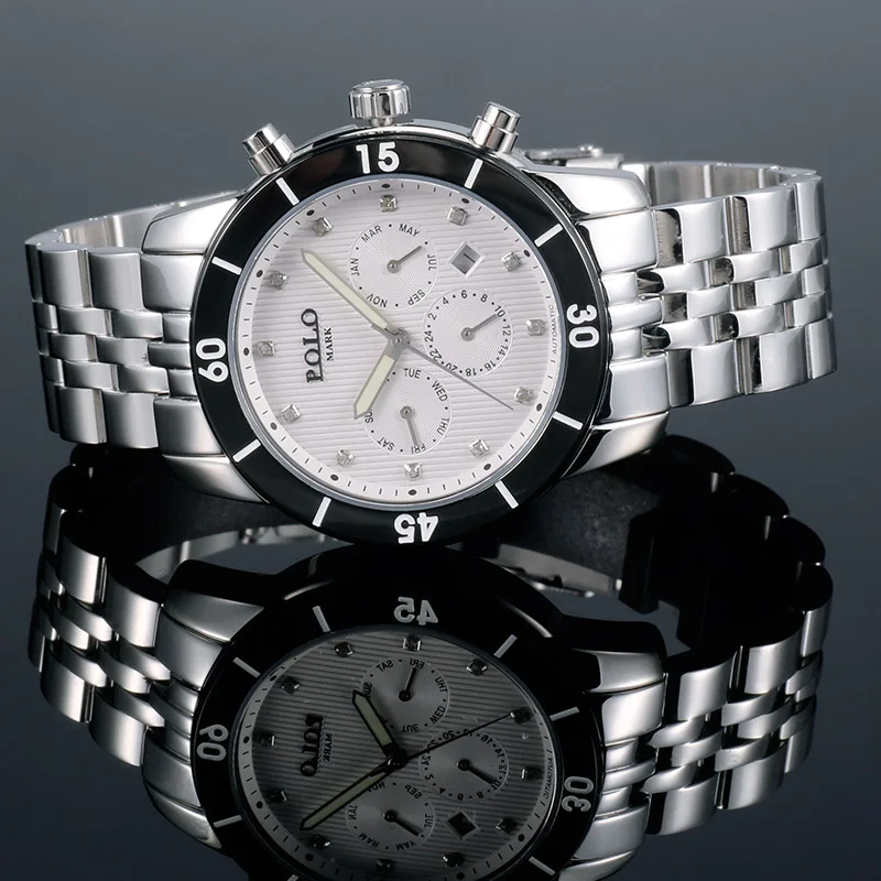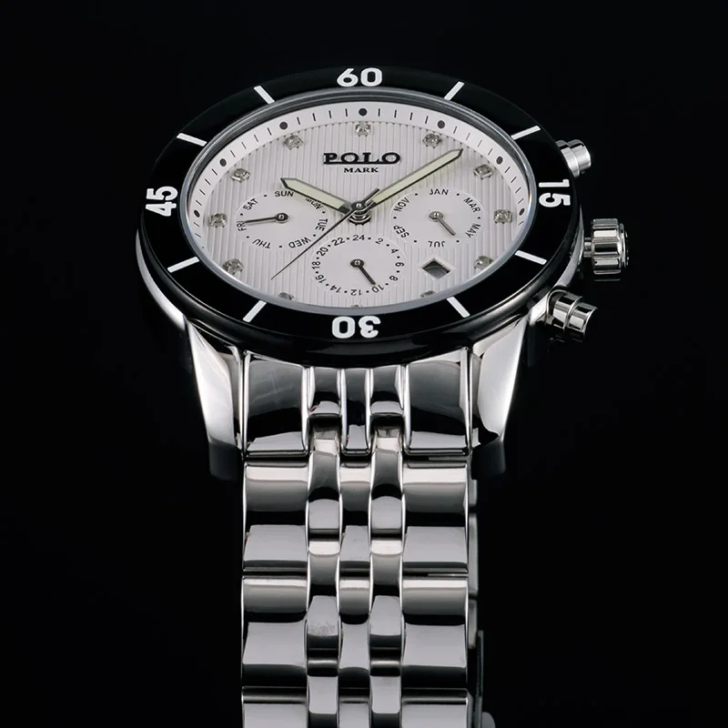 Luxury Simple Style Pointer Dial Display Quartz Watch Stainless Steel Band Custom Logo Water Resistant Ronda Movement Fashion