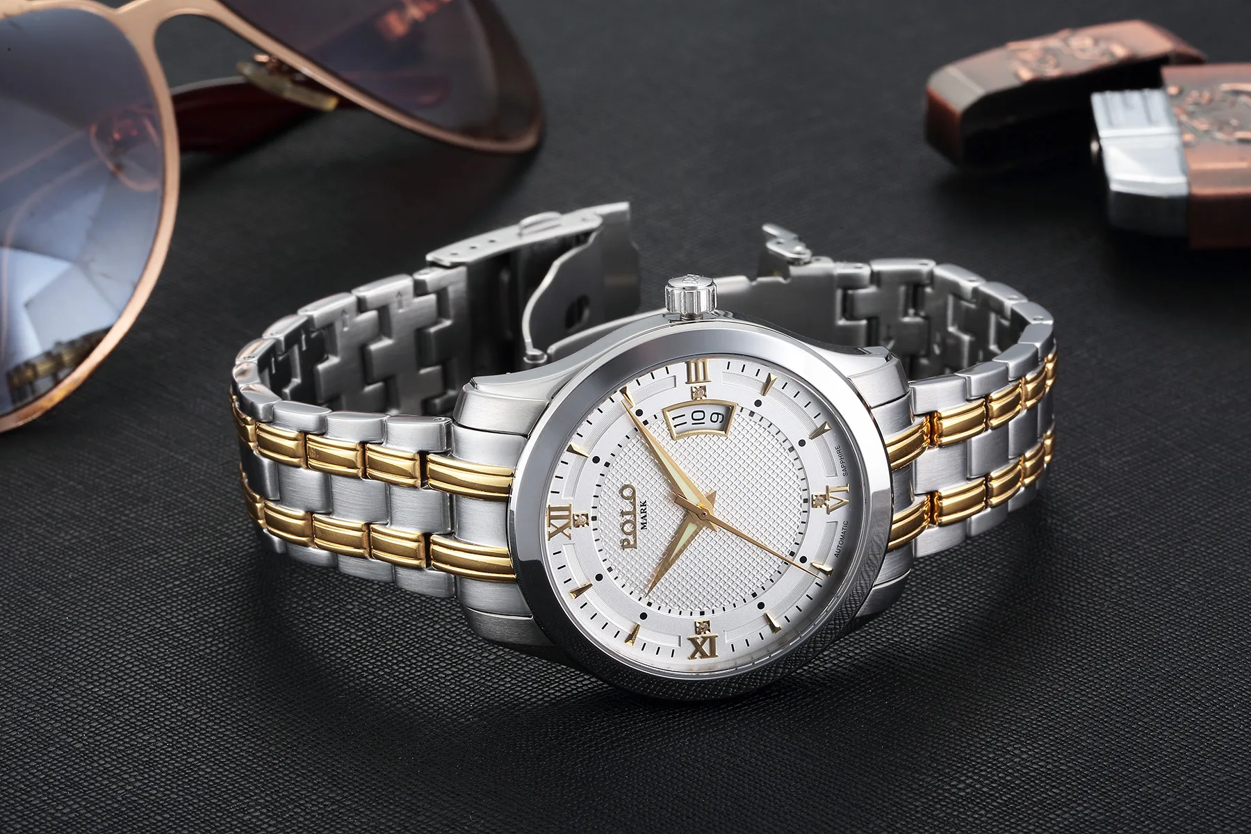 Skmei 9348 Luxury Charm Cartoon Auto Date Luminous Pointer Stainless Steel Strap Water Resistant Business Watch for Men