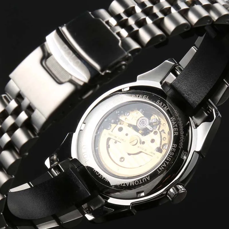 Luxury Men's Analog Mechanical Round Wristwatch Sapphire Crystal Dial Stainless Steel Case Butterfly Clasp Waterproof Design