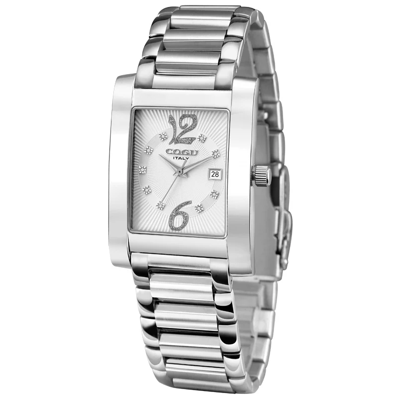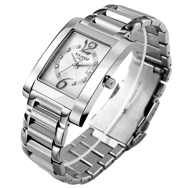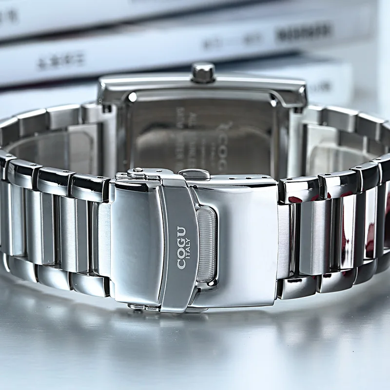 Luxurious Retro 43mm Rectangular Dial Quartz Fashion Watch 18mm Stainless Steel Citizen Movement Simple Pointer Display Boxed