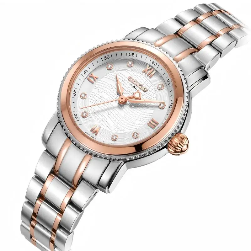 Virtuoso Diamond Charm Ladies' Watch Ronda Quartz Movement Stainless Steel Band Sapphire Crystal Dial Butterfly Clasp 3BAR Water