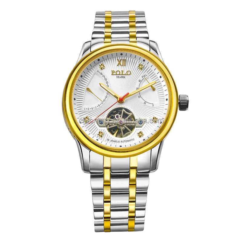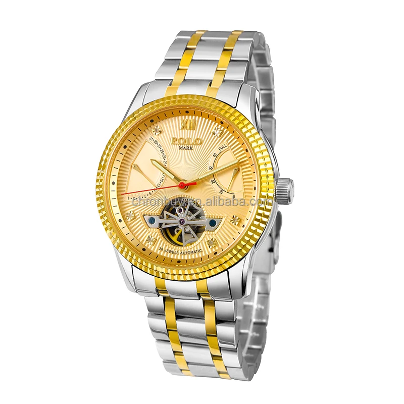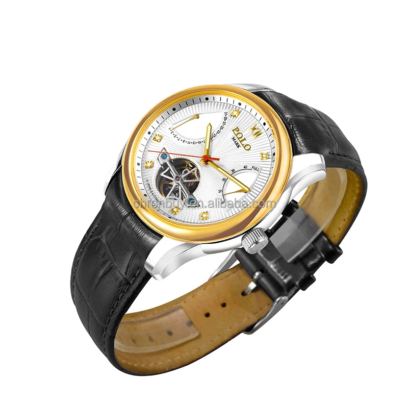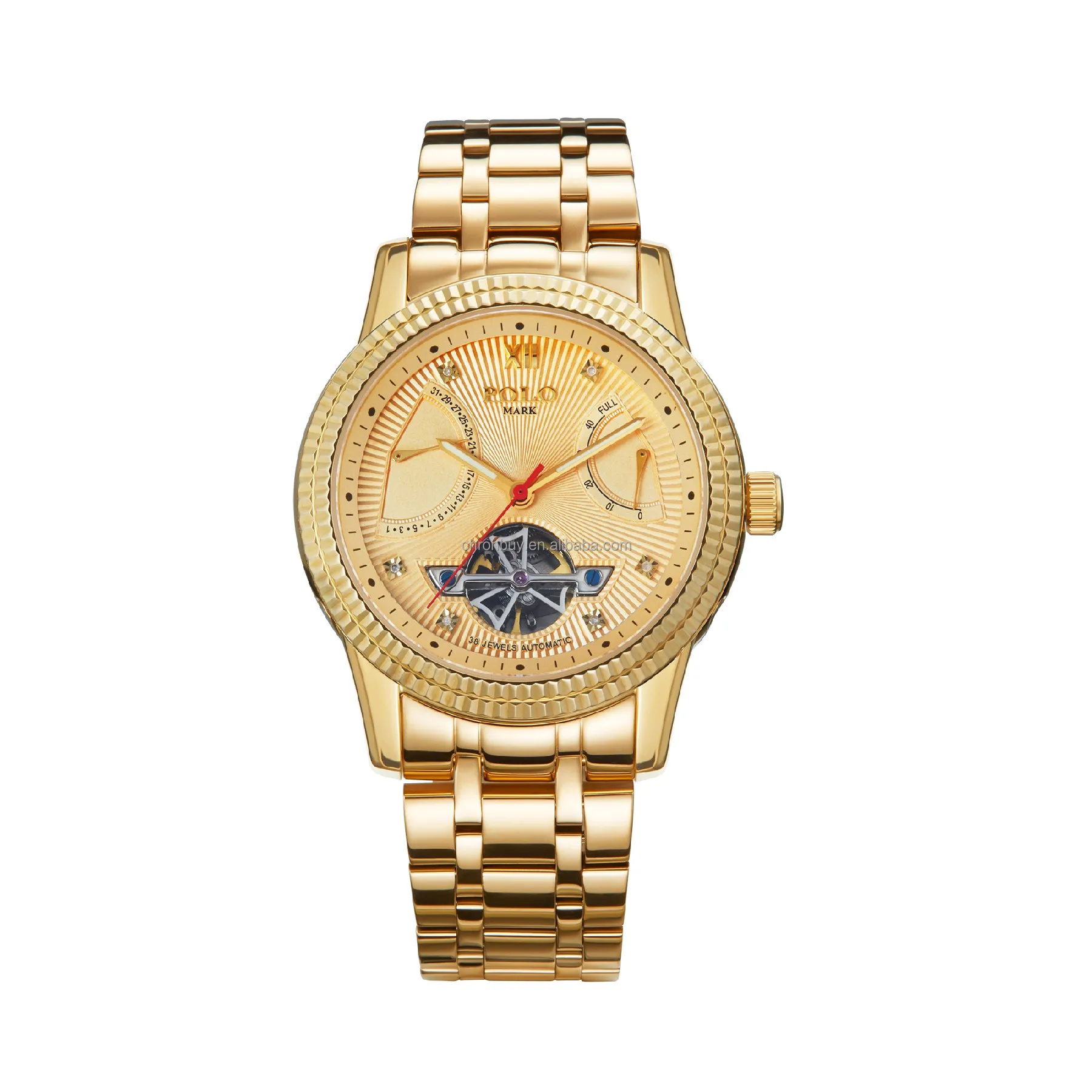 Men's Flyback Power Reserve Mechanical Watch Genuine Diamonds Sapphire Crystal 30M Waterproof Stainless Steel Case Dial