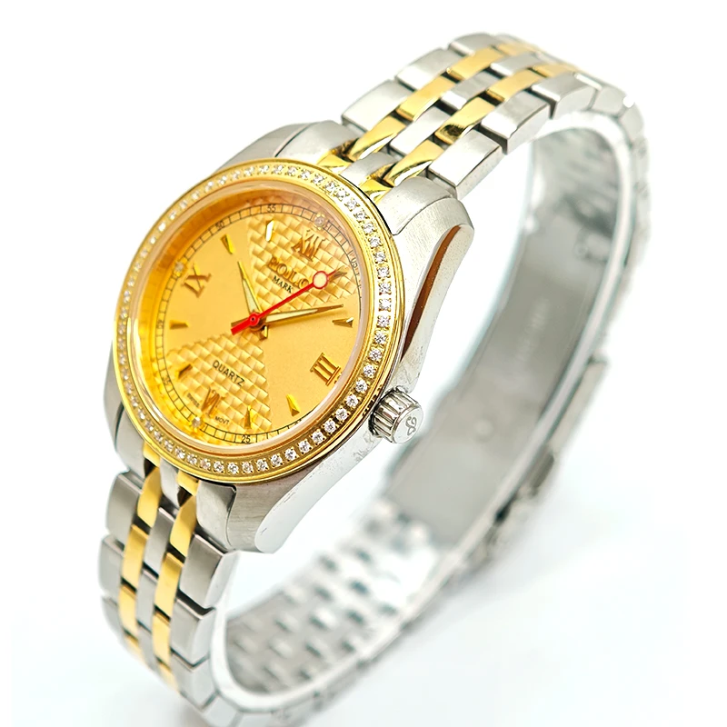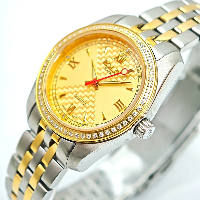 Classic Radiant Business Luxury Ladies' Ronda Quartz Analog Dial Watch 35mm Stainless Steel Case Sapphire Crystal Diamond Water
