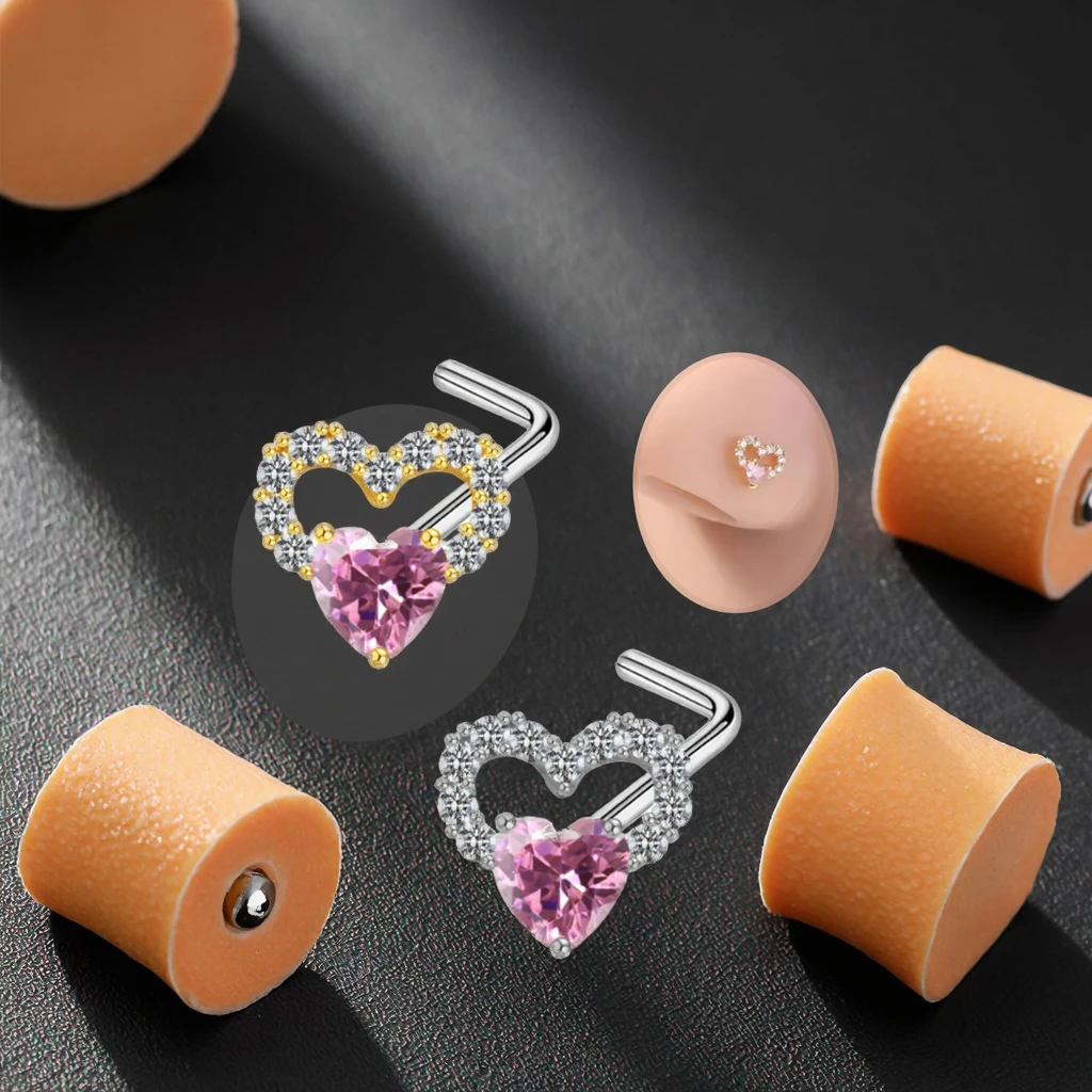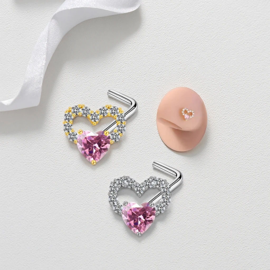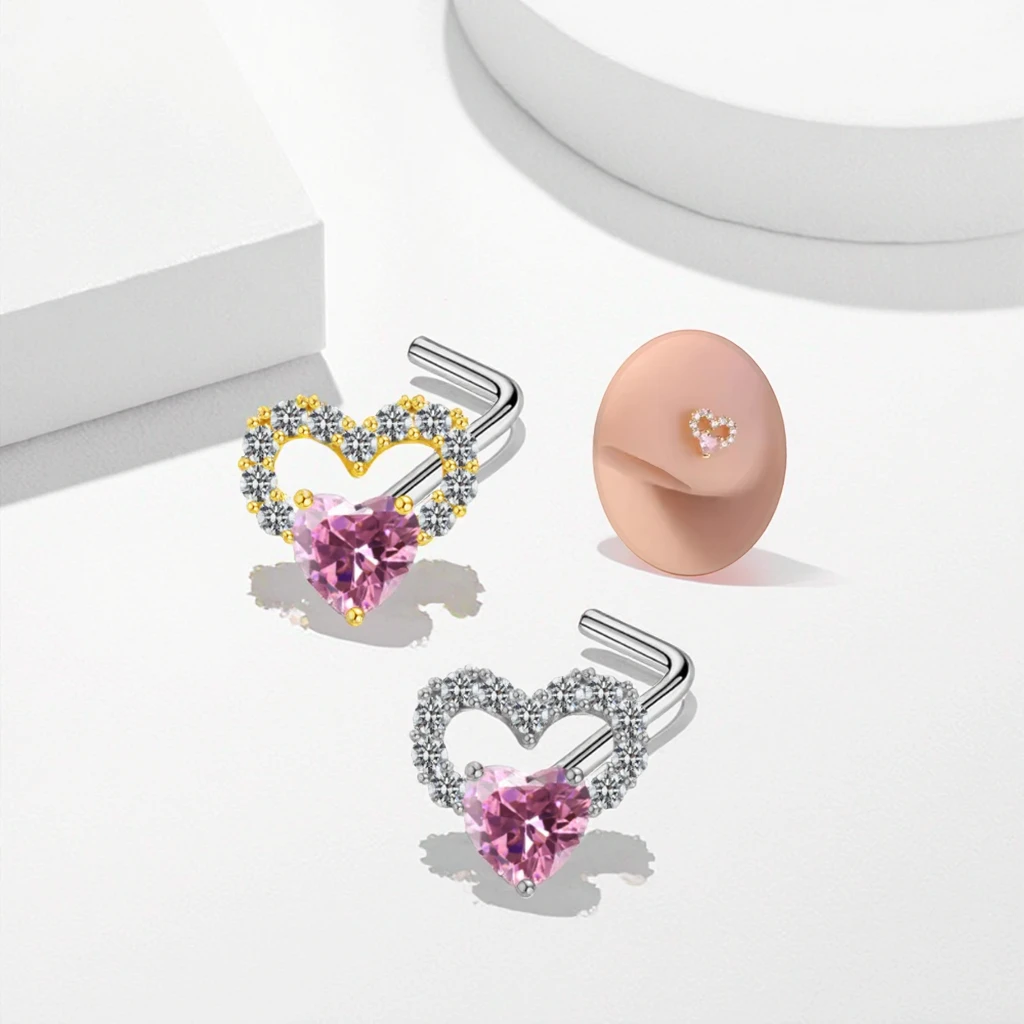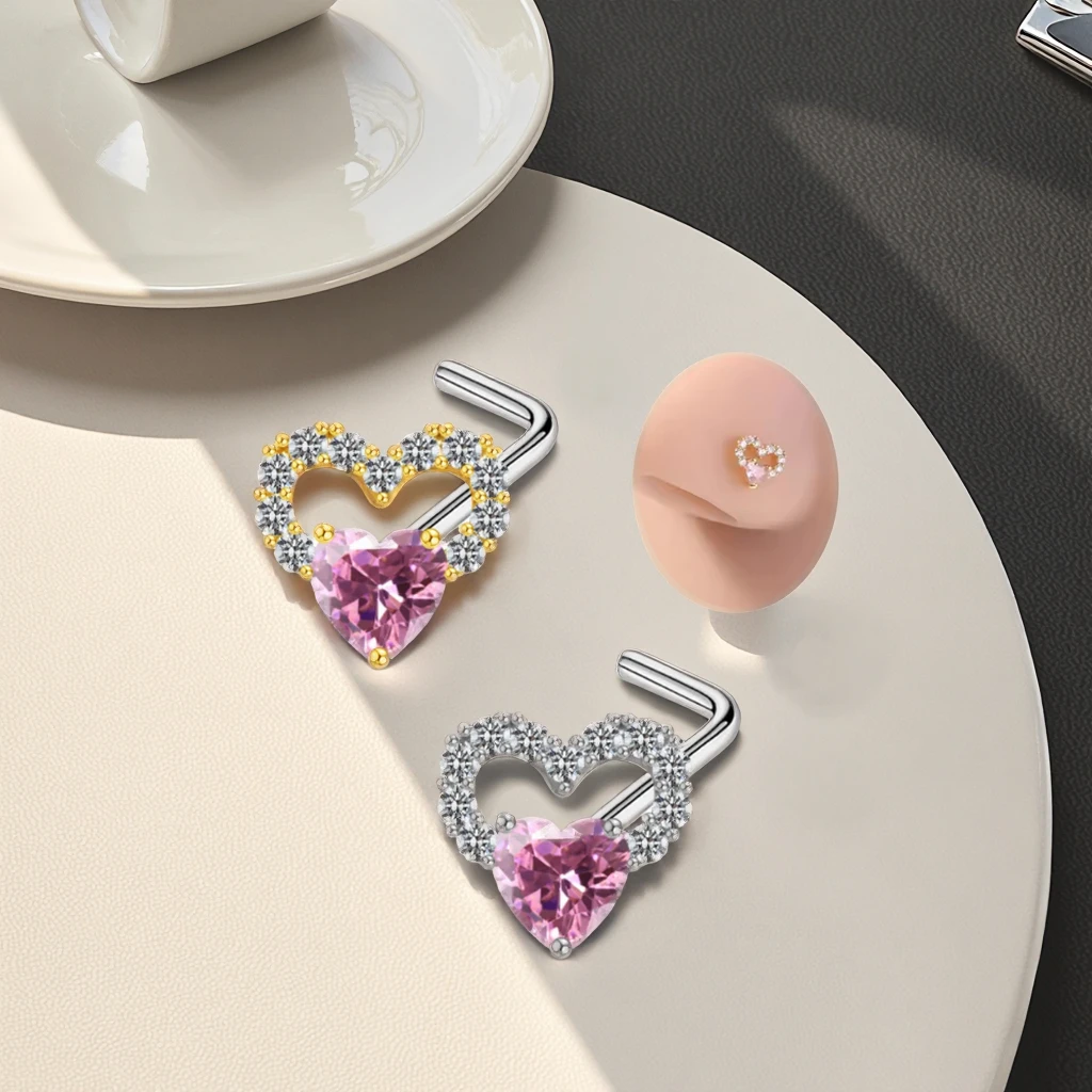 L Shaped Nose Stud Ring Gold Plated Heart Nose Piercing for Wedding New Fashion Piercing Indian Jewelry