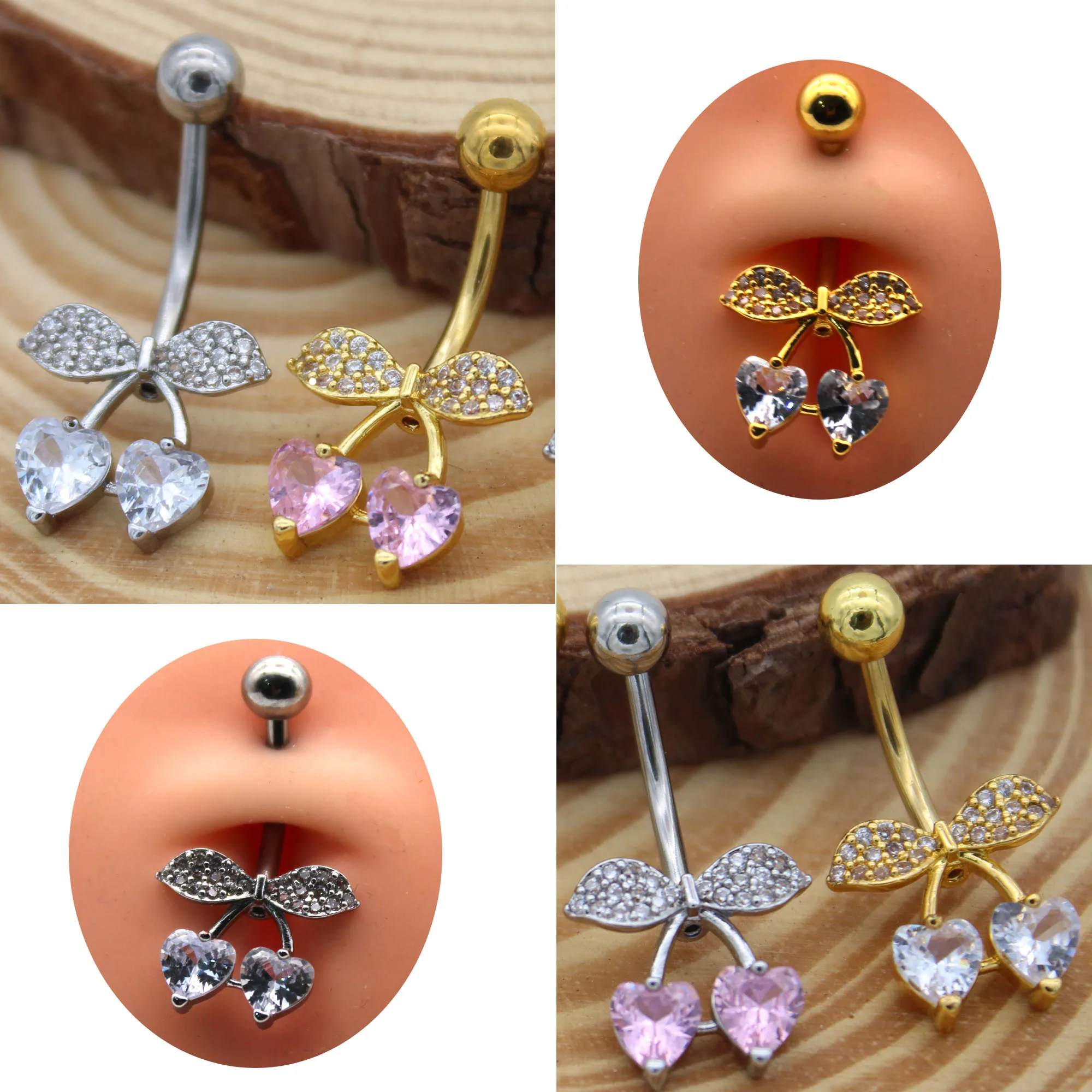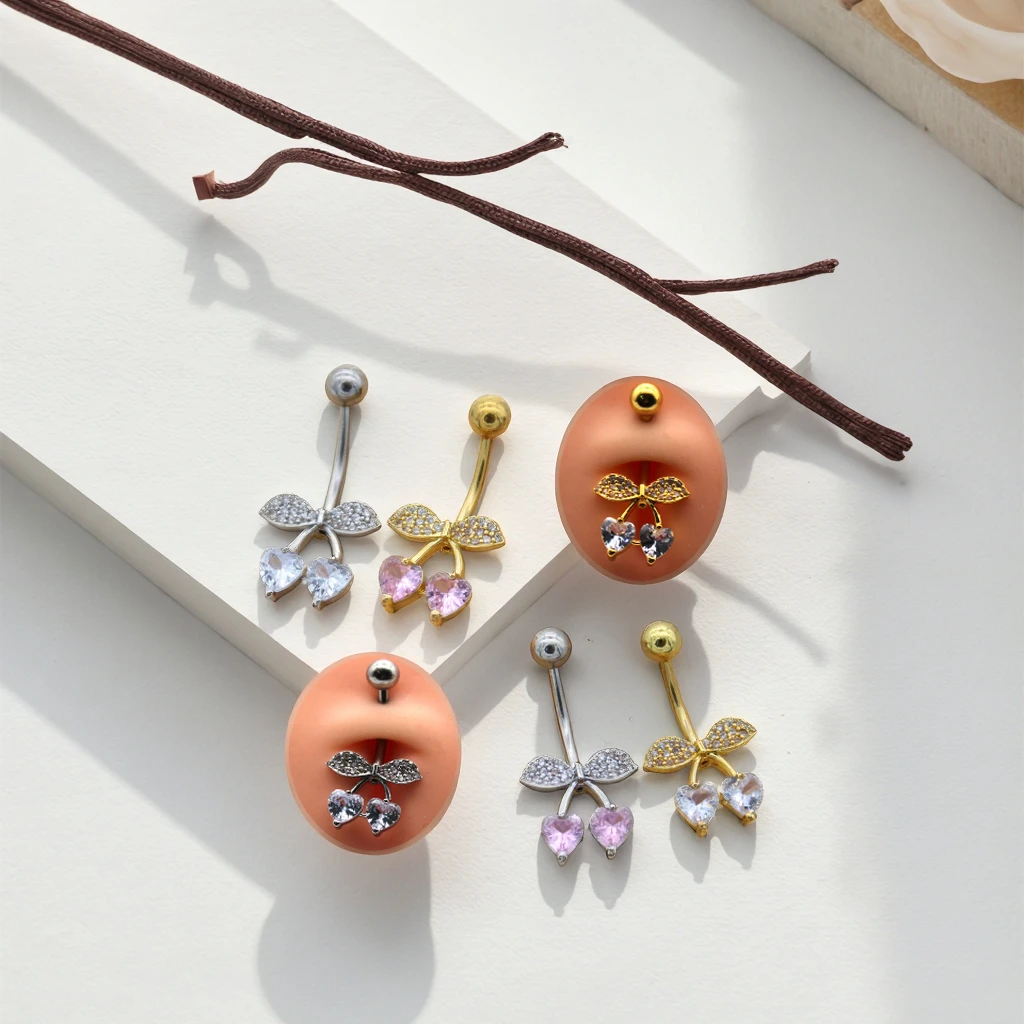 CZ Crystal Cherry Belly Ring New Trendy Navel Piercing for Women 2026 Hot Sale Body Jewelry Surgical Steel Piercing