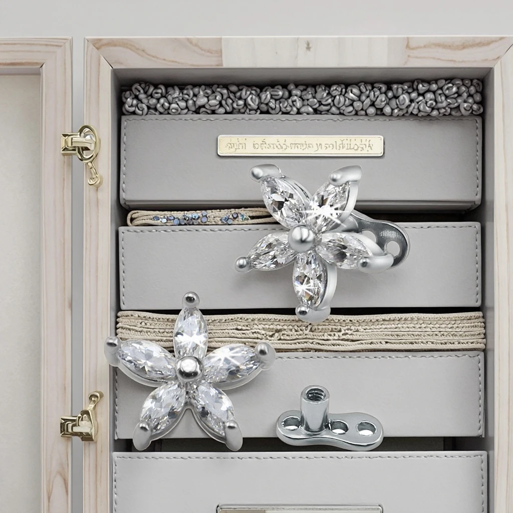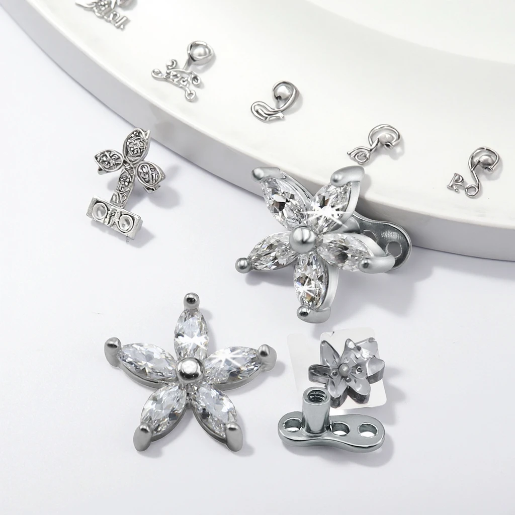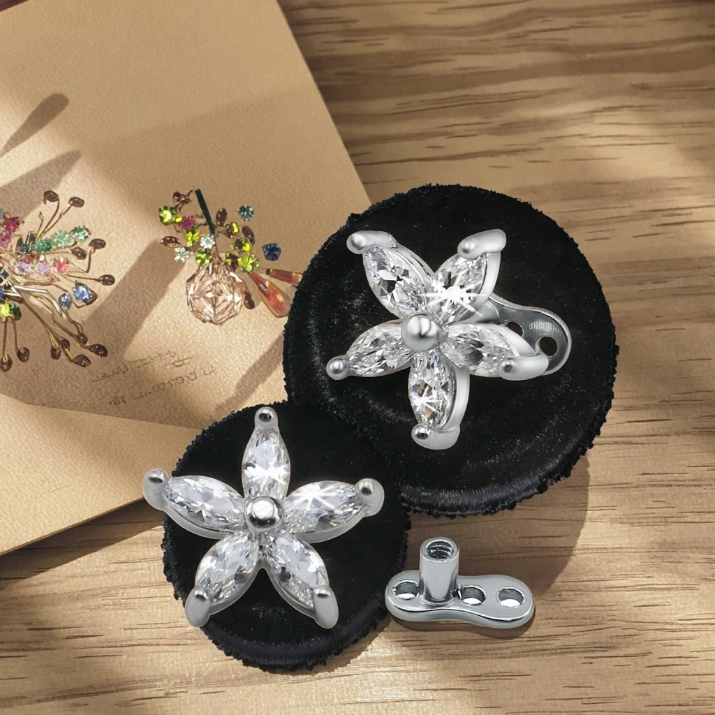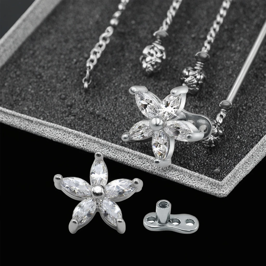 Cubic Zircon Flower Dermal Piercing Stainless Steel Dermal Anchor Fashion Piercing Jewelry