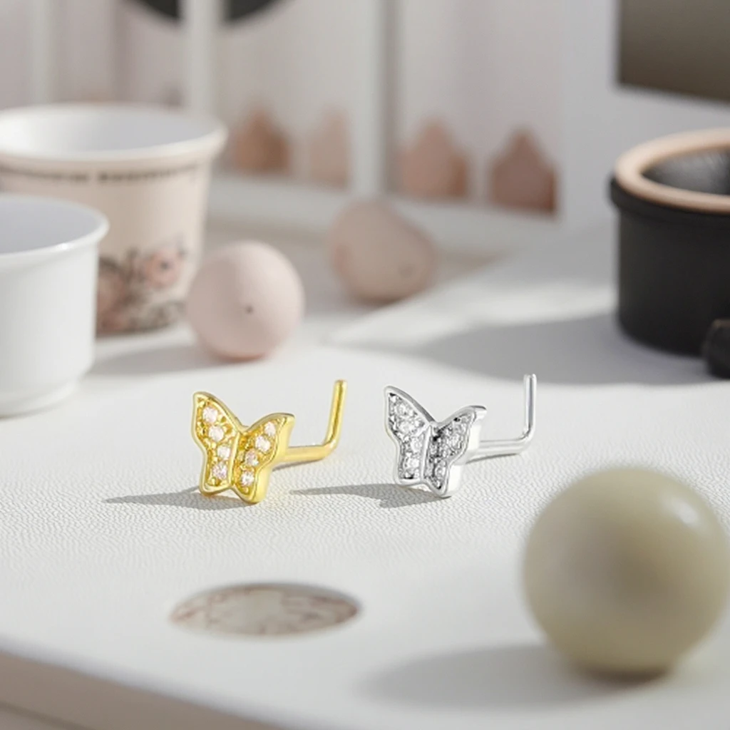 Stainless Steel Butterfly Nose Piercing L Shaped Nose Stud Ring Wholesale Body Jewelry