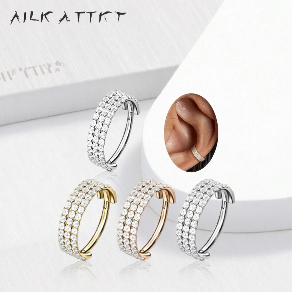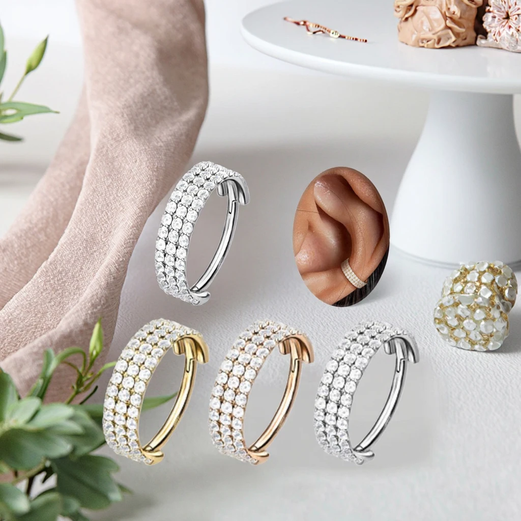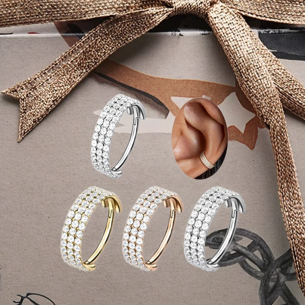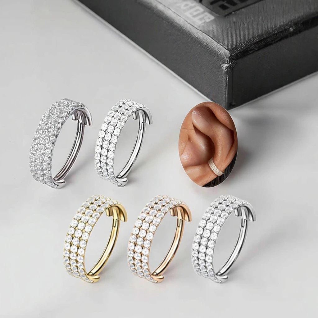 Xinfocus Daith Earrings Cartilage Conch Helix Earring Hoop Clear CZ Hinged Segment 316L Surgical Steel Body Piercing Jewelry